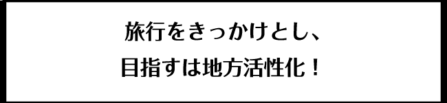 地域活性化の方法は様々あると思いますが、私たちは旅行という切り口で、地方活性化に貢献していきたいと考えています。