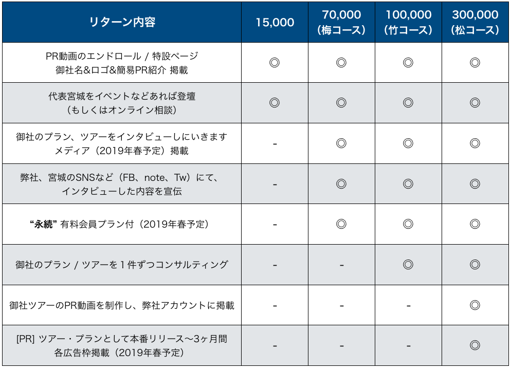 ※「みなさま向け」のリターンを希望の場合は法人とは別に「みなさま向け」をご支援ください。