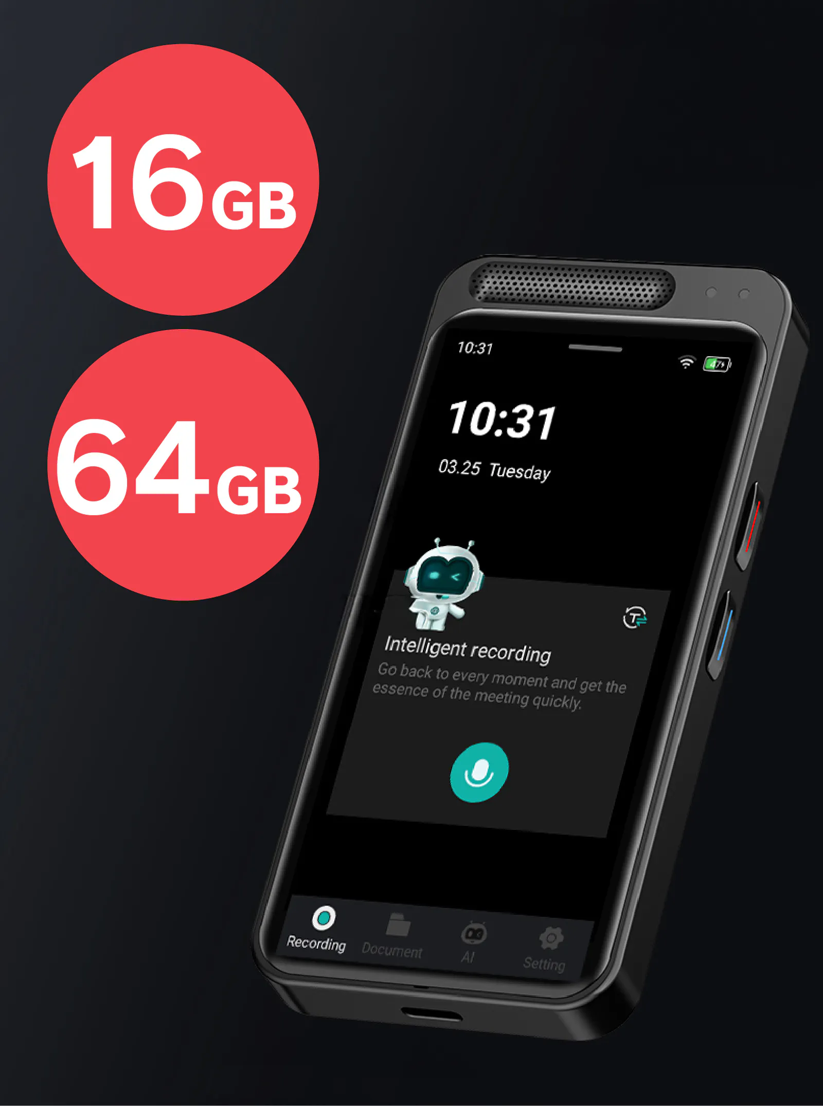 もちろん16GBでもボイスレコーダーとして十分な容量ですが、【AI voice recorder M3】はこれに加えて64GBのmicroSDカードを内蔵しておりデータを保存できます。
