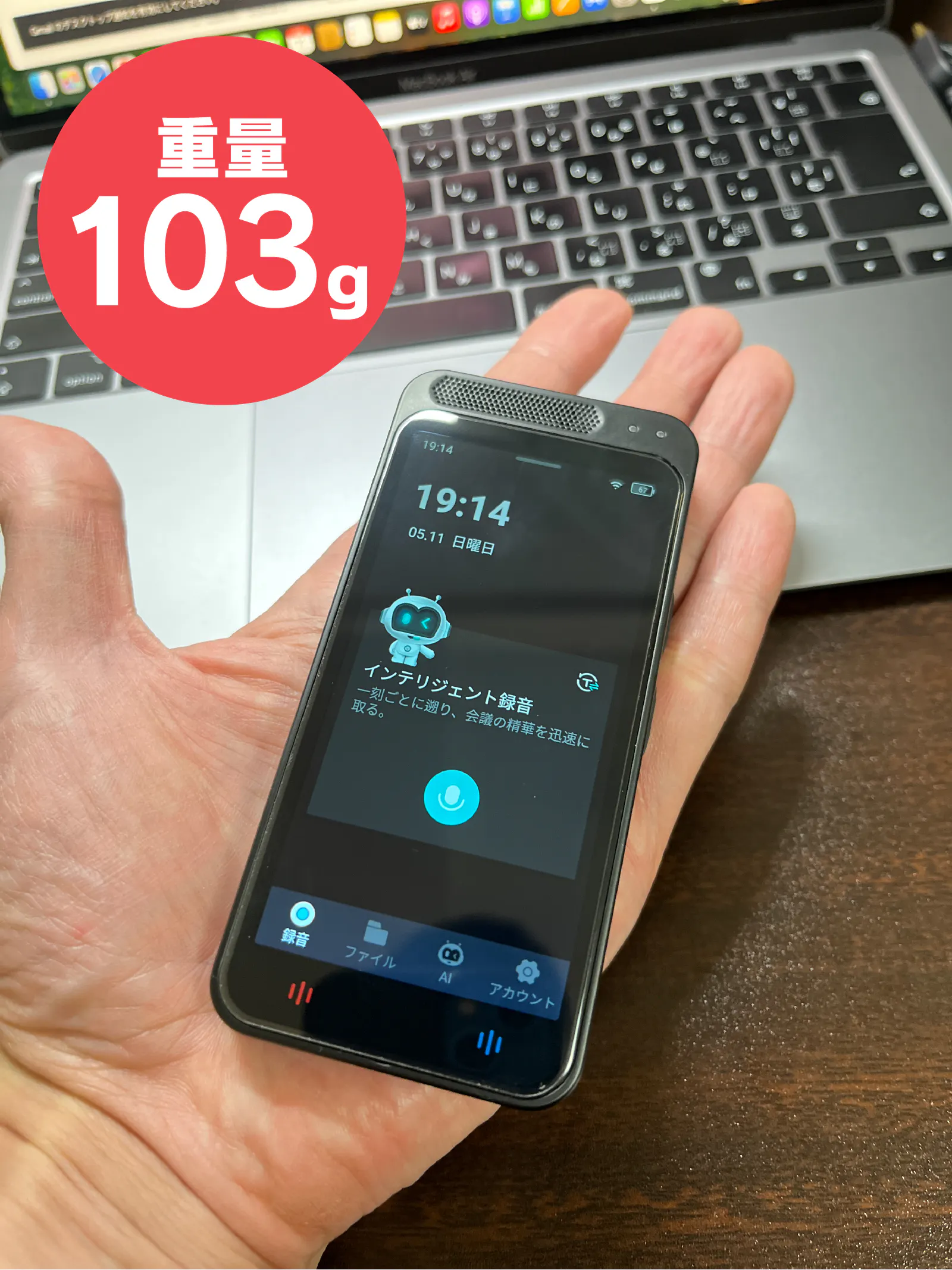 【AI voice recorder M3】はAI voice recorder M5に比べ、一回り小さい手のひらサイズ。