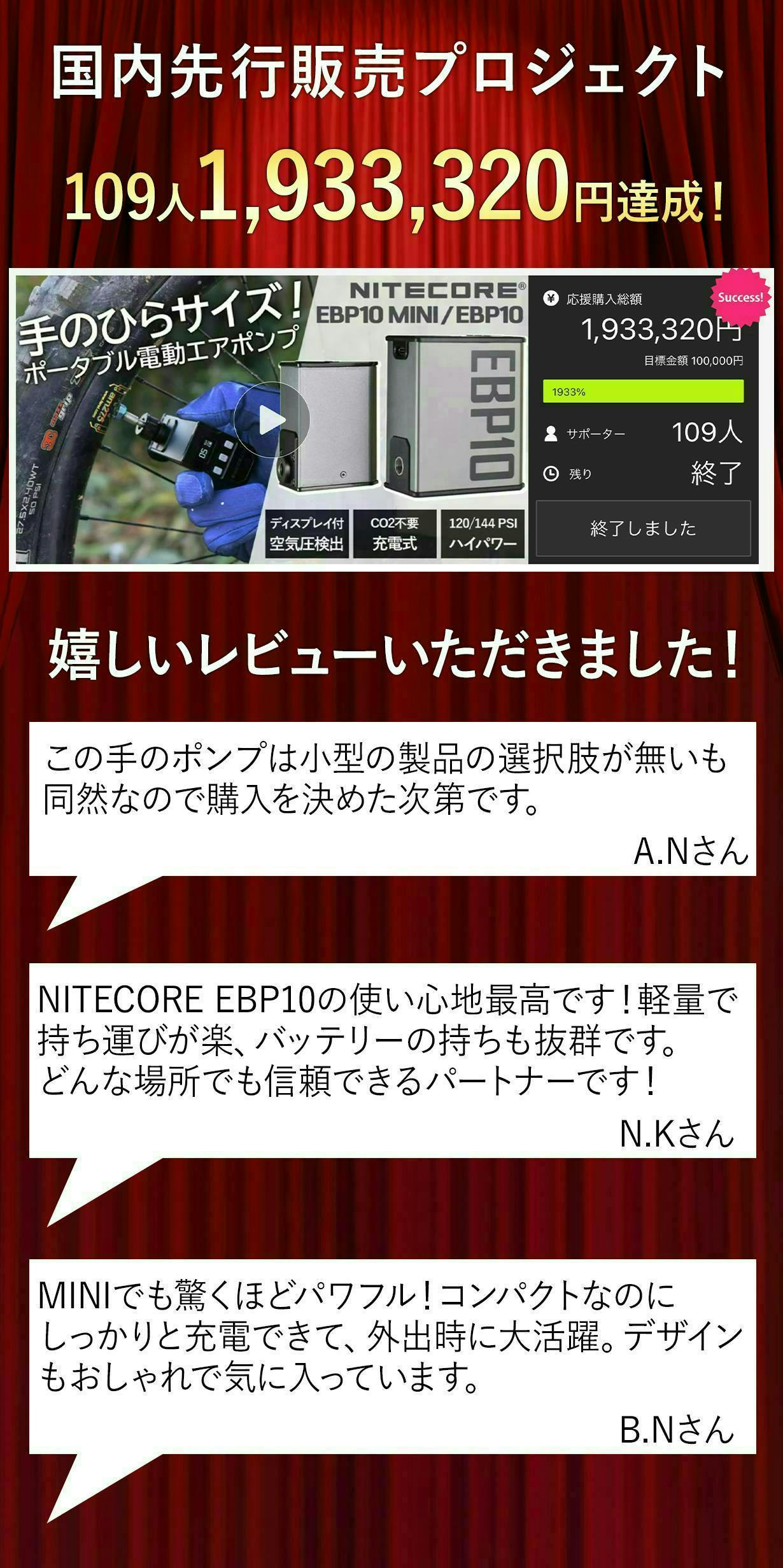 • 皆様、こんばんは!Bright DIYチームです。アウトドア活動やスポーツを楽しむ皆さんにとって、道具のメンテナンスは欠かせません。特に、バイクやボールなどのアイテムを常に最適な状態に保つことは、快適な体験に直結します。そんなあなたにピッタリのガジェットが、NITECORE EBP10電動ポンプです。このコンパクトでパワフルなポンプは、多彩な機能を搭載しており、アウトドアライフをさらに充実させることができるでしょう。1. コンパクトながら強力な性能NITECORE EBP10は、そのコンパクトなサイズにもかかわらず、非常にパワフルなモーターを搭載しています。持ち運びに便利な重さとサイズで、キャンプやサイクリング、ビーチなど、さまざまなシーンで活躍します。しっかりとした充填力を持ち、多様なニーズに応えることができるため、どんな状況でも安心して使用できます。2. 多彩な空気圧モードEBP10には、ロードバイク、マウンテンバイク、ボールなどに対応した6つの異なる空気圧モードが搭載されています。たとえば、ロードバイクモードでは60〜120PSI、マウンテンバイクモードでは15〜50PSI、ボールモードでは4〜16PSIに設定でき、各アイテムに最適な空気圧を簡単に調整可能です。この柔軟性により、さまざまなアクティビティに最適な状態で臨むことができます。3. 特別なバイクモード新たに追加されたバイクモードは、特にバイク愛好者にとって重要な機能です。このモードによって、より細かな空気圧調整が可能になり、快適で安全なライディングをサポートします。EBP10は単なる電動ポンプではなく、バイクを愛する人々にとって欠かせない、実用的で便利なツールと言えるでしょう。4. 使いやすさを追求したデザインEBP10は、ユーザーの使いやすさを考慮して設計されています。ワンタッチでモードを切り替えられ、目的の空気圧に簡単に設定できるため、操作もスムーズです。この利便性は、時間を節約し、より効率的に作業を進める助けとなります。NITECORE EBP10は、その多機能性と持ち運びやすさから、アウトドアやスポーツを愛する人々にとって理想的な選択肢です。このポンプを使って、あなたのレジャー活動をより快適にし、常に最適な状態で楽しむための一歩を踏み出しましょう。あなたのアクティブなライフスタイルをサポートするために、EBP10がきっと役立つことでしょう!以上、Bright DIYチームでした!ご興味のある方はこの機会をお見逃しなく!https://camp-fire.jp/projects/view/877890Bright DIYチームは、当プロジェクトをもっと多くの方に知っていただきたいと考えております。よかったら、SNSでのシェア・拡散をお願い致します。#nitecore #brightdiyどうぞよろしくお願い致します。Brightチーム  もっと見る