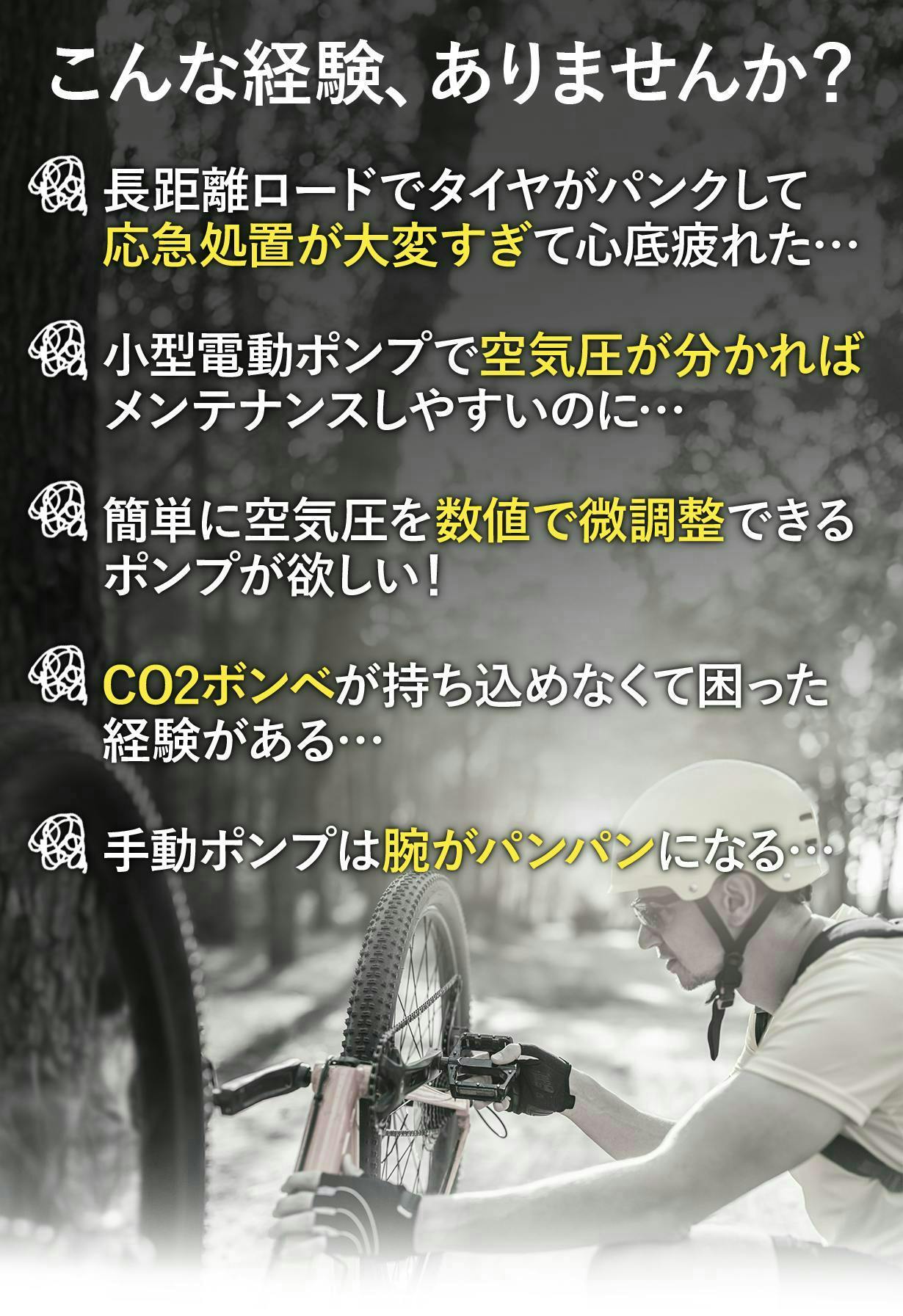 CO2ボンベや手動ポンプだと空気圧検出が不可能ですが、空気圧検出機能のある大型ポンプは持ち運べない…。