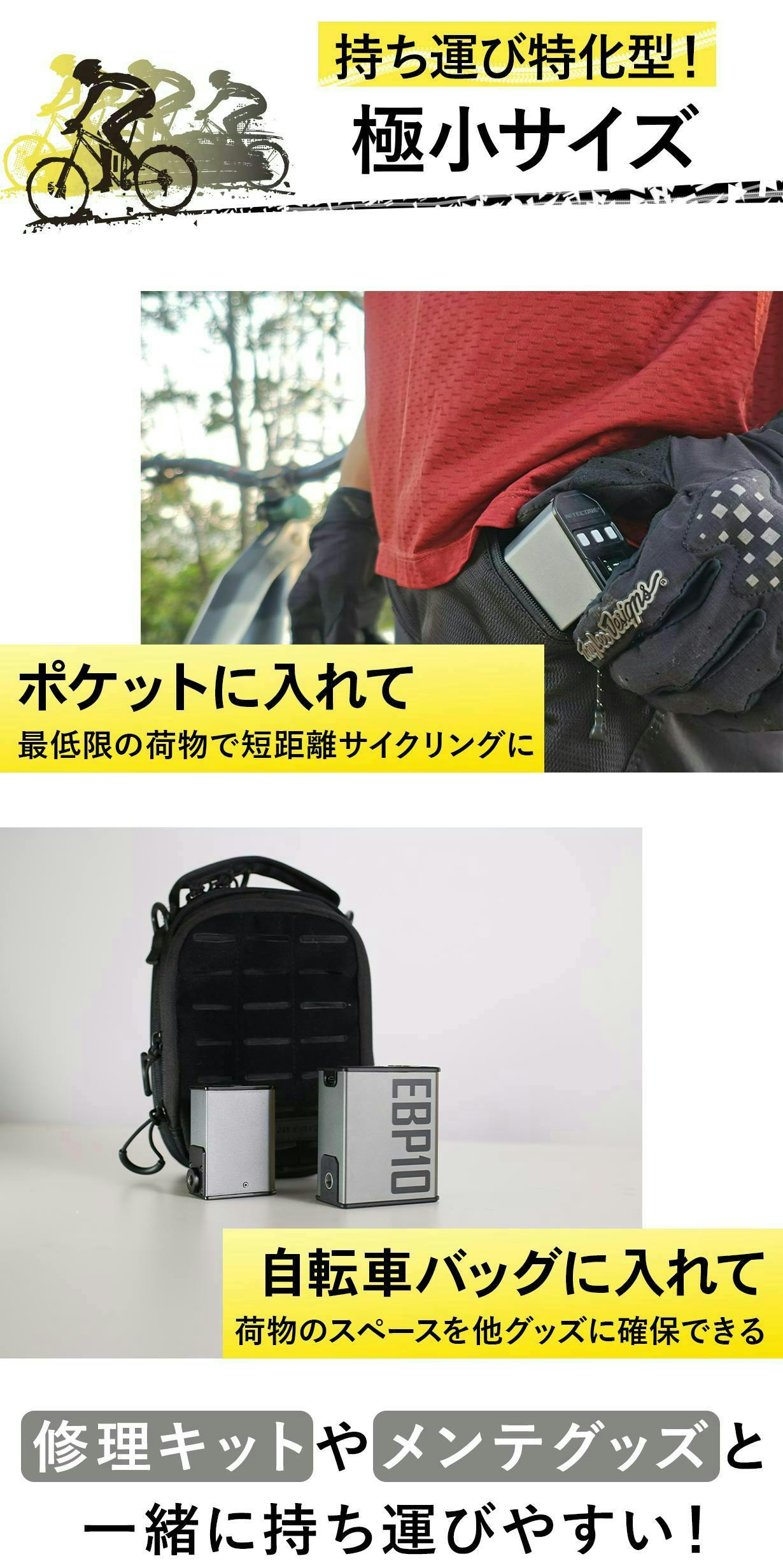 でもパンクした時の応急キットやメンテナスセットは絶対に必要、そんな時にEBP10 MINIならバッグの空きを確保しつつ、電動ポンプを持ち運べます!