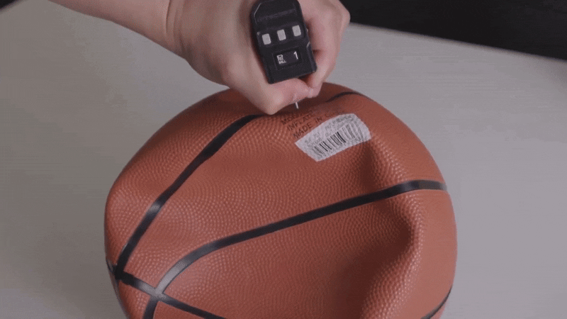 ※充填の実験です。ボール用アタッチメントバルブは付属しておりませんので、市販のものをご用意ください。