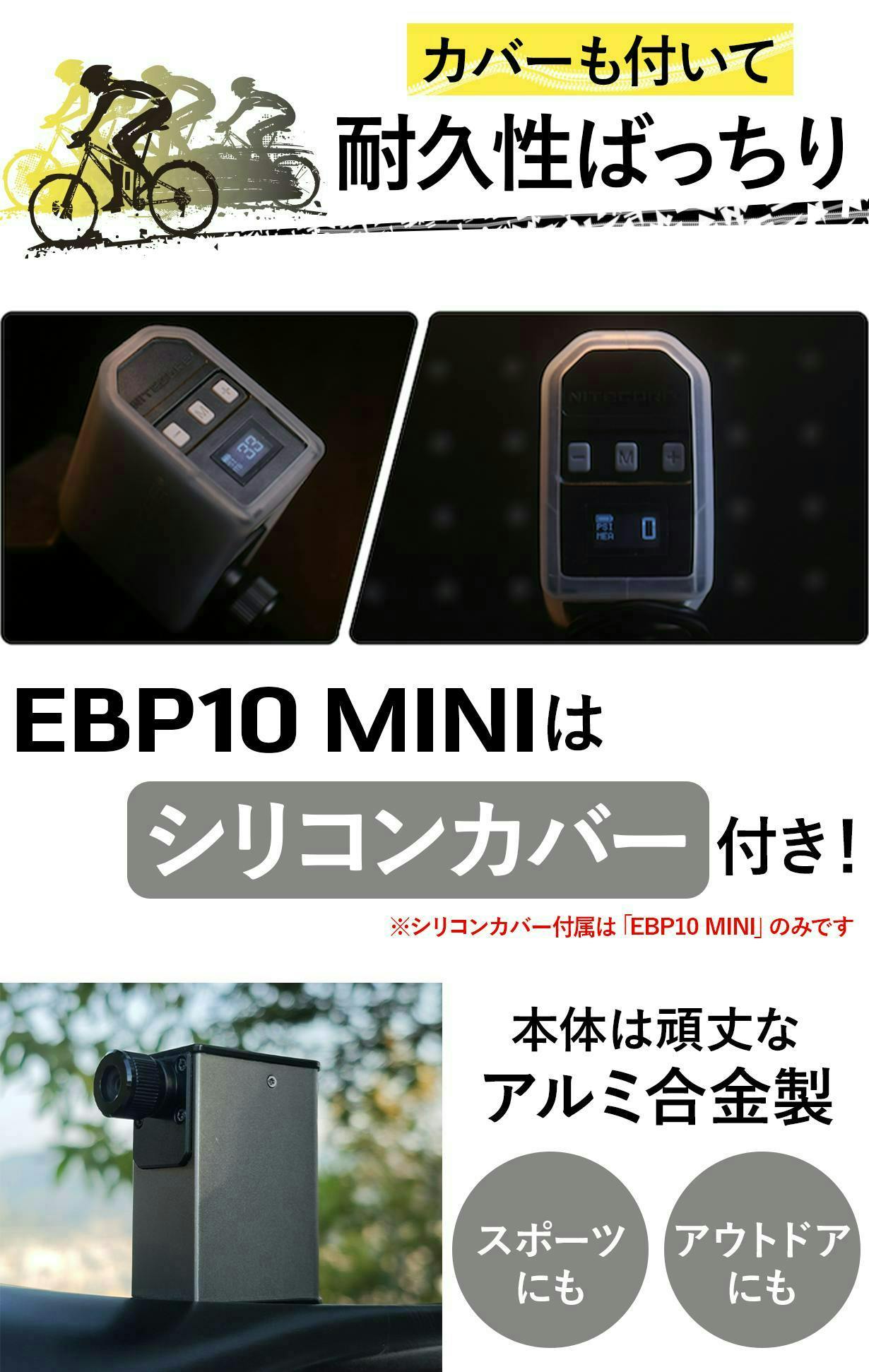 EBP10 MINIは頑丈なアルミニウム合金製&シリコンカバー付属で、耐久性が求められるアウトドアやスポーツサイクルにもぴったり!