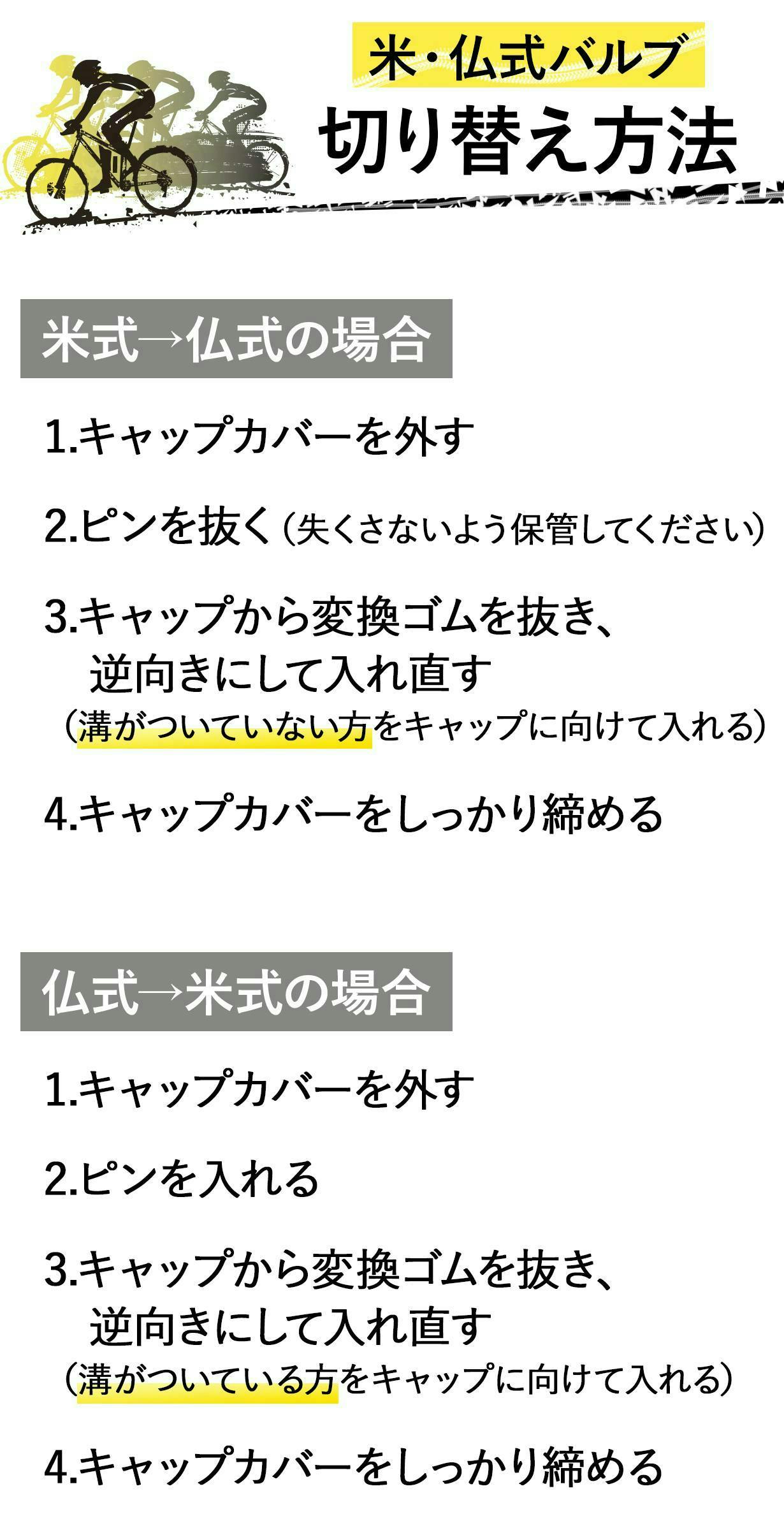 ※ママチャリなどの英式バルブ自転車へ使用する際は、市販されている変換バルブの購入が必要です。本製品のみではお使いいただけませんのでご注意ください。