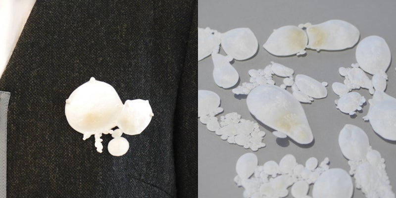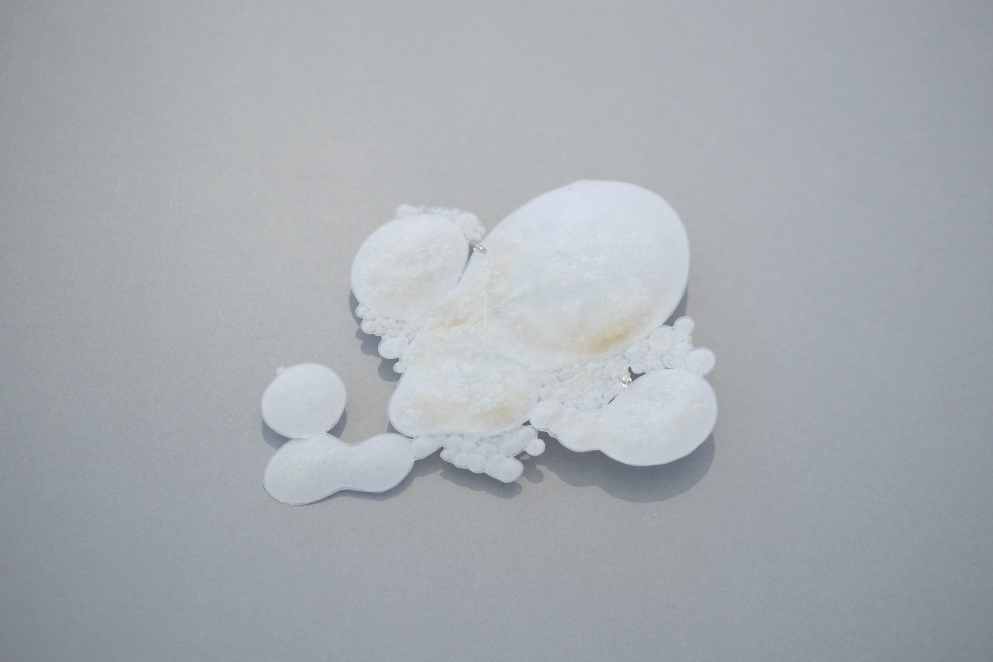 トレーシングペーパーに熱を加え制作された作品。今までに見た事のない技法と、素材やアイディアに留まらずジュエリーのデザインとして細部までこだわり、丁寧に落とし込んでいる完成度が評価の対象となりました。審査員からの圧倒的な支持でグランプリに選ばれました。一つとして同じ表情を見せない偶然性も魅力です。 (作品価格:19,440円/税込 ・送料別)