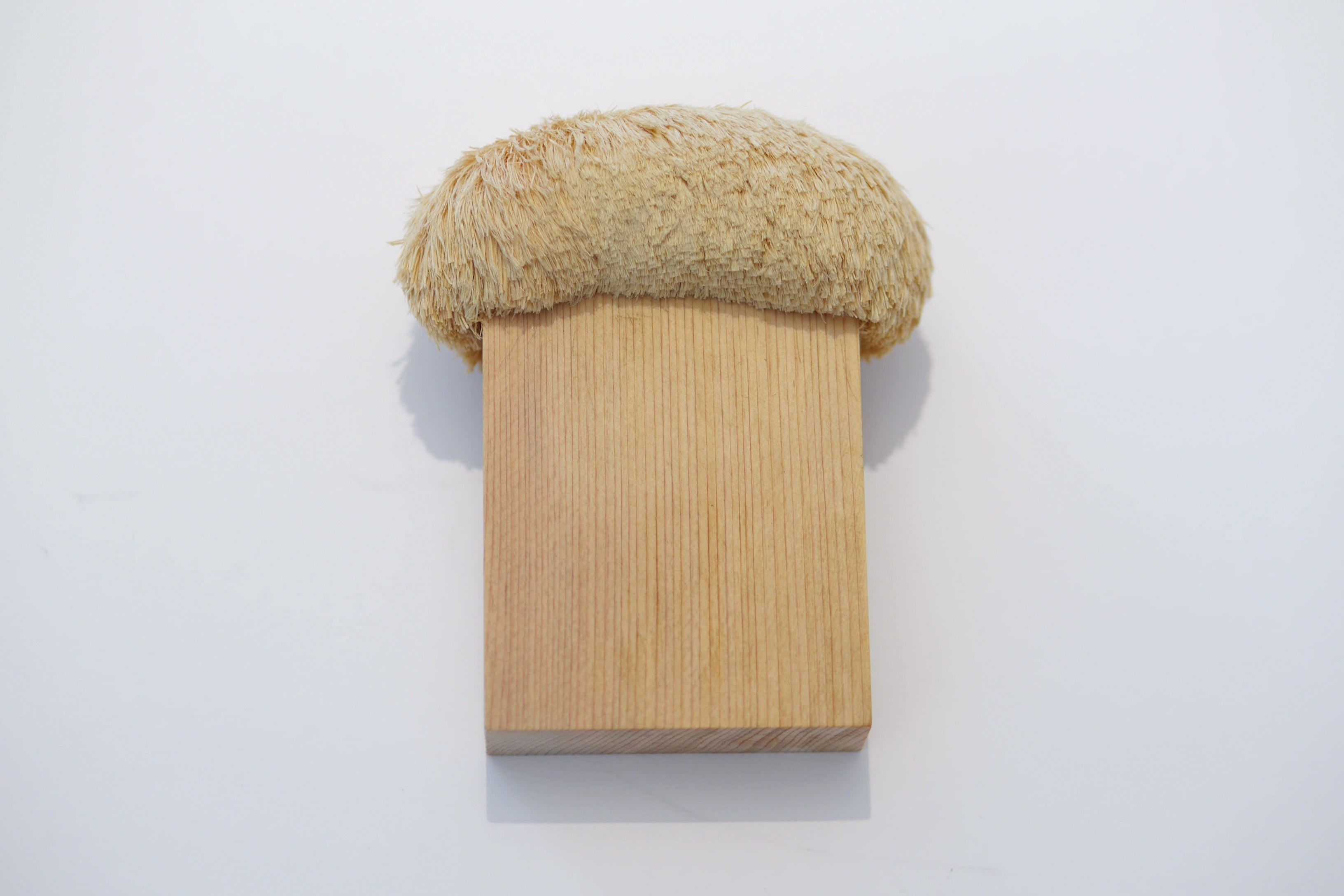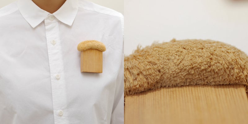 角材を叩いた後、細かく裂いて制作。檜で髪のような質感を表現したブローチ。オブジェにもなりそうなインパクトと、作家の根気が感じられる作品。今回はアクセサリーとしてもより着けやすいように、応募時より一回り小さく制作しました。 (作品価格:24,840円 / 税込・送料別)