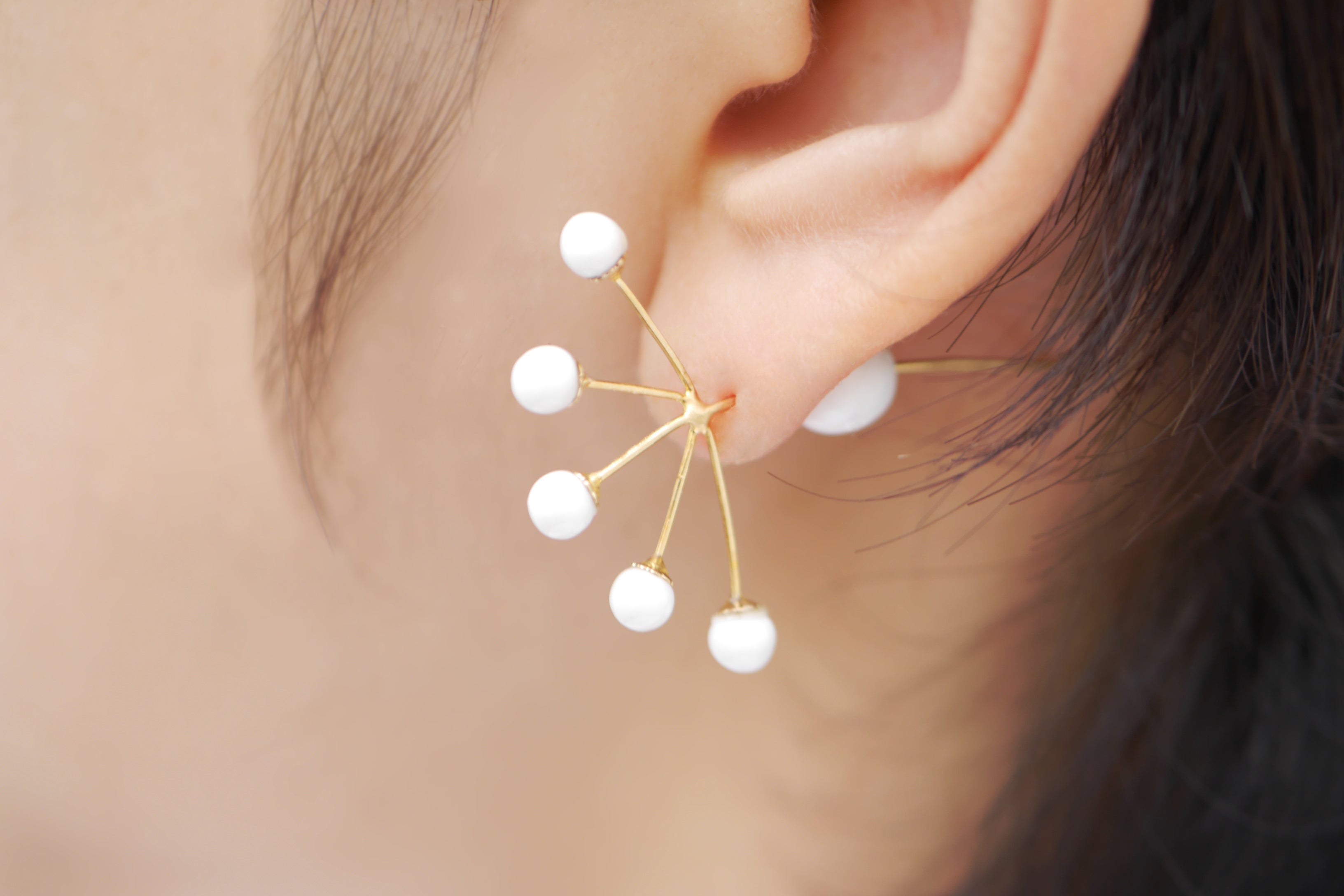 中に入ったパールが、正面からは見えず、身につけた人の目線から見える形でデザインされた作品。作家の繊細な感性が、完成度も高くシンプルな表現で魅力的に落とし込まれています。 (作品価格:8,640円 / 税込・送料別)