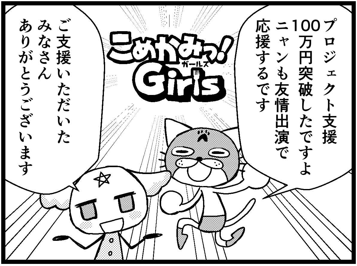 2018/12/14 19:22みなさま、ご支援いただき誠にありがとうございます!プロジェクトをサポートいただいている海猫屋さんから支援金100万円突破のお祝い漫画が届きました!<海猫屋さん>漫画家・イラストレーターMediBang!にて「それいけ!ディスにゃん」を自主的連載中!引き続き、ご支援をよろしくお願いいたします! もっと見る