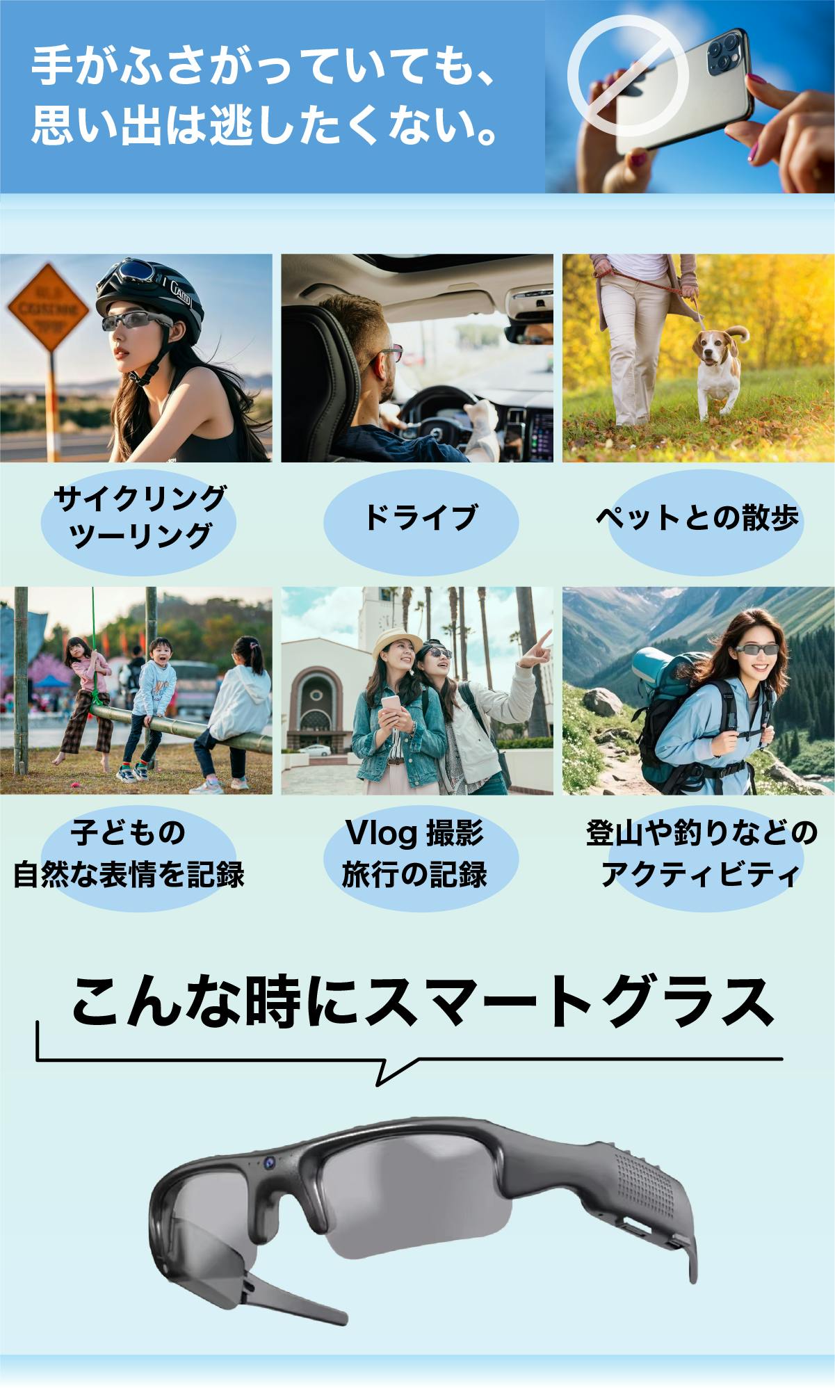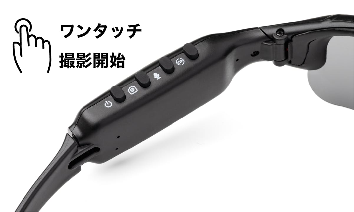 サングラスには1080P高精細カメラが内蔵されており、自分の視点からそのまま写真や動画を撮影できます。