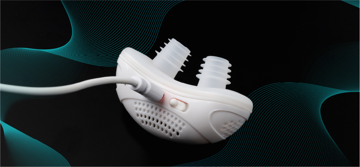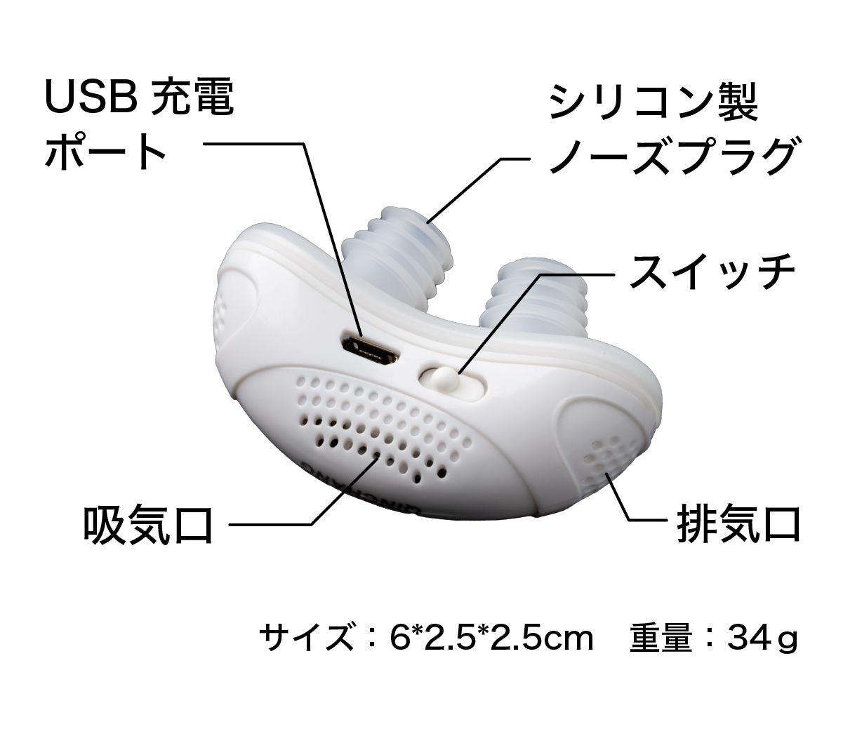 このデバイスは空気の流れに配慮した、いびきが気になる方の睡眠環境づくりをサポートするアイテムです。