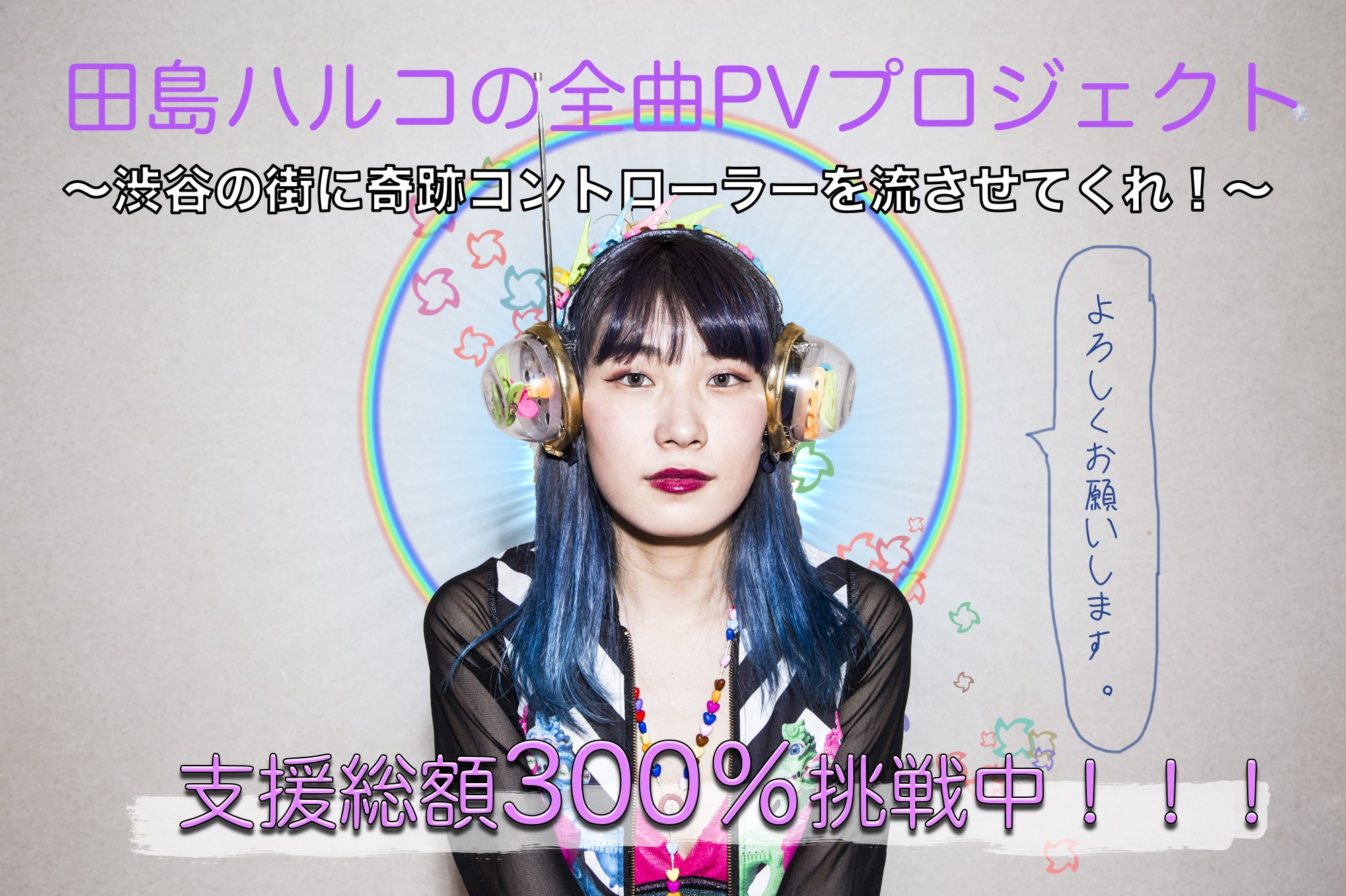 2018/08/08 19:53たくさんのご支援、本当に心から感謝しております。そして、こうなったらもう、もっともっと広まってくれ〜〜〜〜!!!という気持ちです。 「ネクストゴールに挑戦」のお知らせ! 本プロジェクトはおかげさまで、無事目標金額分(15万円)のご支援をいただき、現在は目標金額45万円(達成率300%)のネクストゴールに挑戦しています! 目標金額達成後は、制作環境を充実させたり、映像作家の方のご協力をいただいたりして、より充実した映像制作を目指す予定ですが、 ☆達成率が300%に到達した際には、・田島ハルコが「夢でみたPV」を(可能な限りの予算を投じて)再現!・iPhoneのカメラではなくビデオカメラを導入するなど、自宅撮影・セルフ編集シリーズのPVもより豪華に! …を実現します! また、さらに!!すでにご支援いただいた方を含め、全員に追加のリターンとして、「田島ハルコが夢で見たPVの絵コンテ」をコピーしたものをプレゼント!(※「お気持ちコース」、「トラック制作」、「ライブ出演」のコースの方はスキャンしたデータをお送りします。) すでにご支援いただいている皆様も、ぜひ引き続き、SNSなどで本プロジェクトを拡散いただければとてもありがたいです!!!!どうぞよろしくお願い致します。 もっと見る