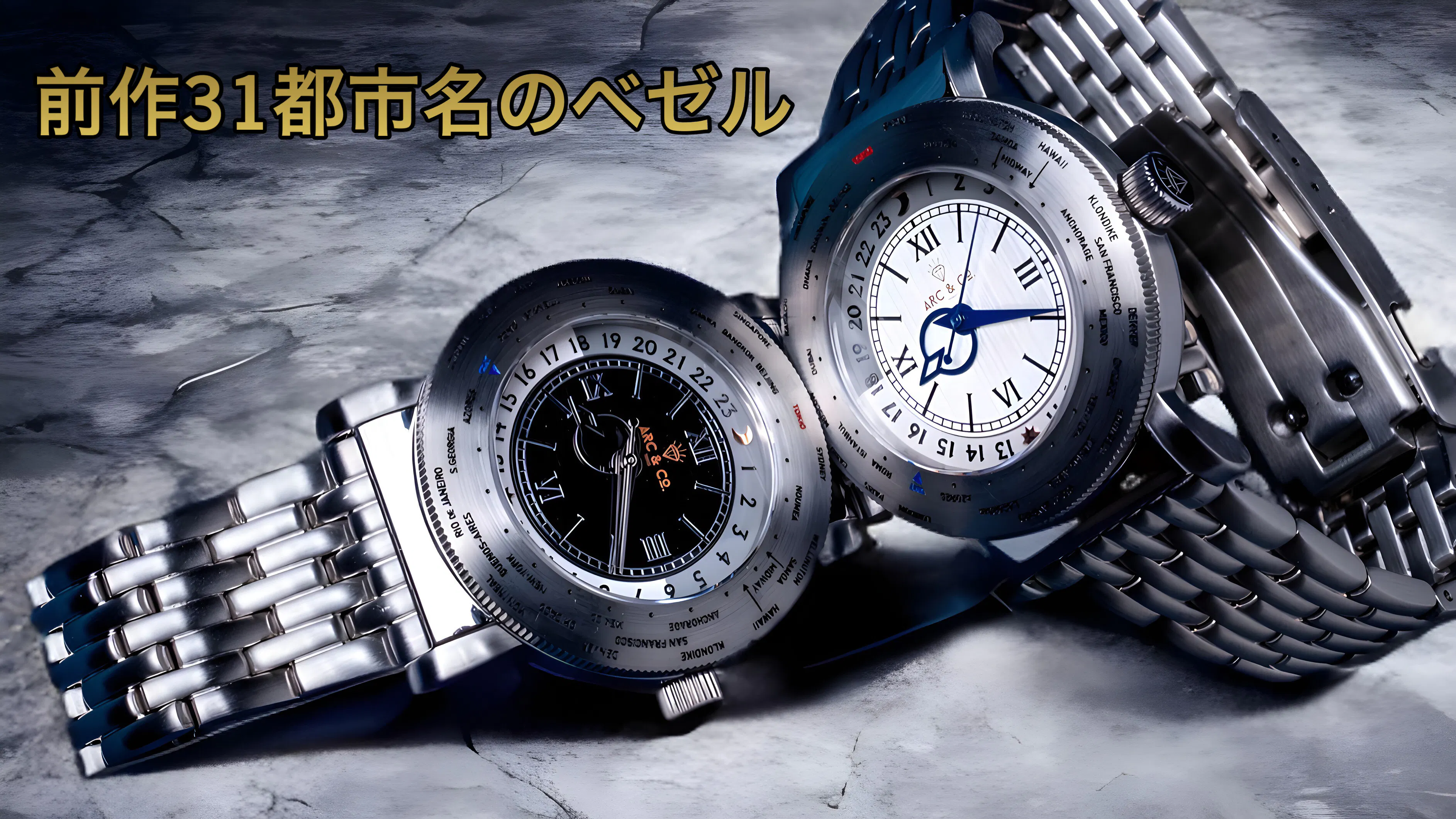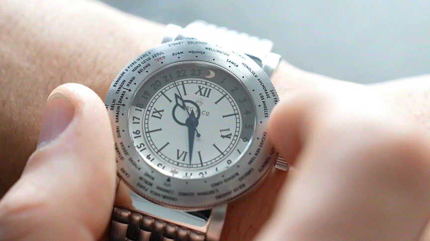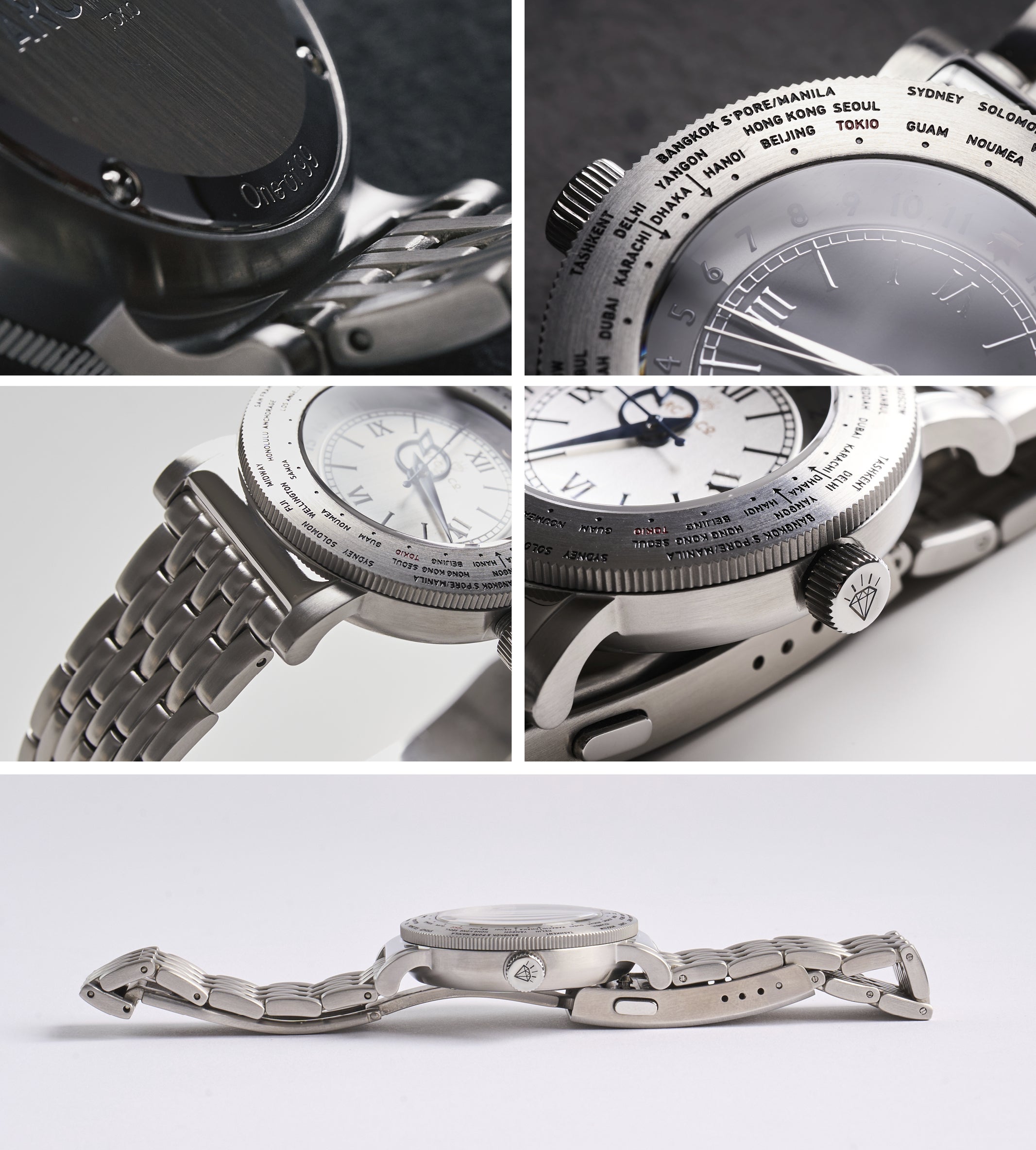 前作の31都市名を刻印したモデルは、1940年代のオリジナルモデルに記されていた都市名をほぼ忠実にベゼルに再現。当時はGreenwich Mean Time(通称GMT)と呼ばれる、英国にあるグリニッジ天文台を基準とするグリニッジ標準時しか存在しませんでした。
