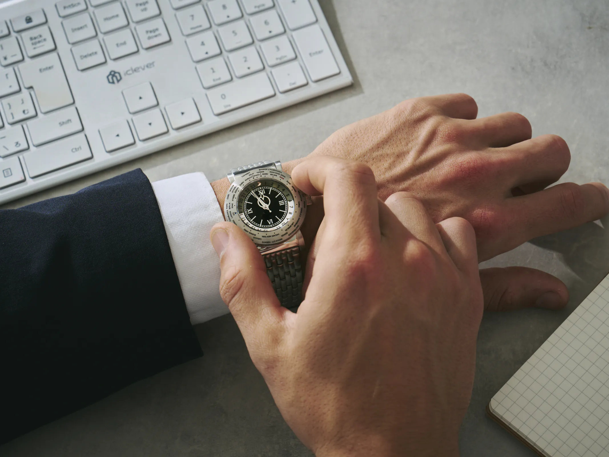 外径38mmのベゼルに46もの都市名をフルスペルで刻むのは、まさに挑戦でした。