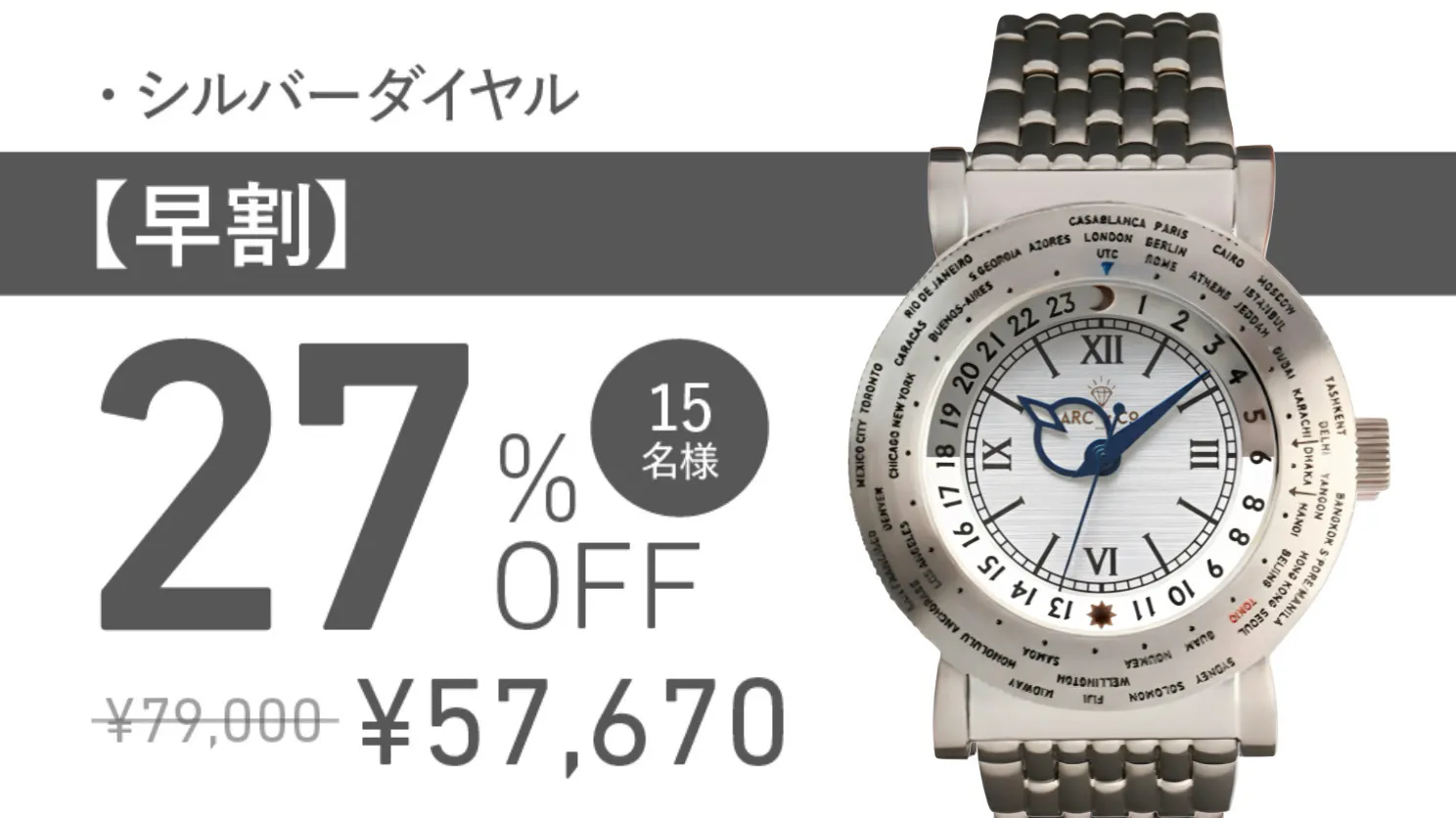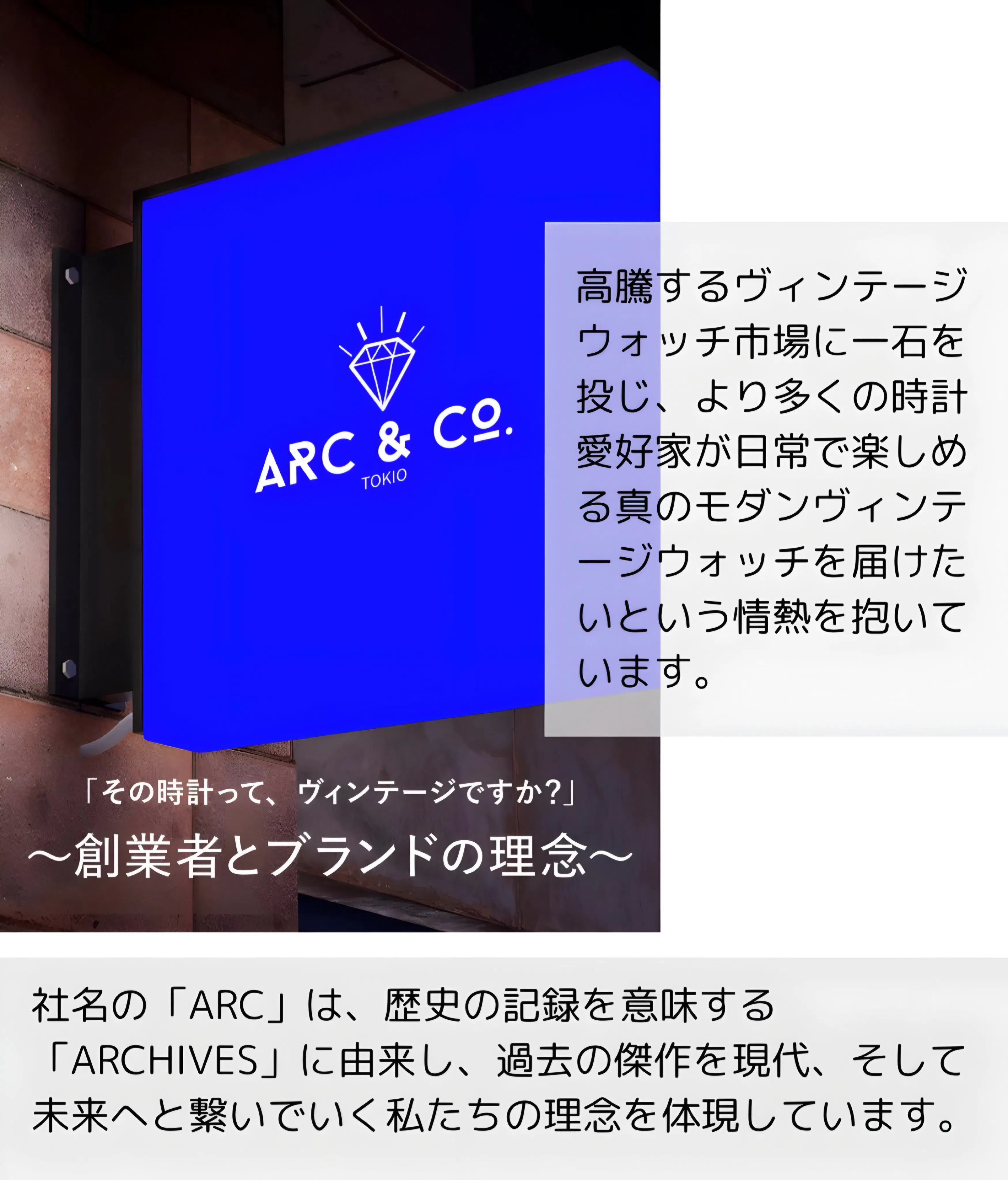 ●事業者の連絡先:Tel: 050-1110-1398/ Mail: info@arcandcowatches.com