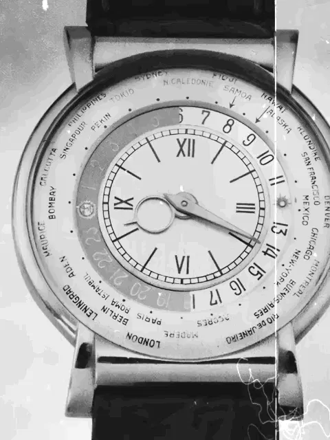 懐中時計から腕時計に移行しはじめた1930年代から、クオーツ時計が世に出始める1970年代初頭にかけて、スイスの名だたる時計メーカーたちが中心となってそのデザインと機能を競い合い、数々の機械式腕時計の逸品が生み出されました。中でも1940年代に世に出されたワールドタイムは、その機能美も相まってこんにちも珠玉の一本としてコレクターたちの垂涎の的となっています。