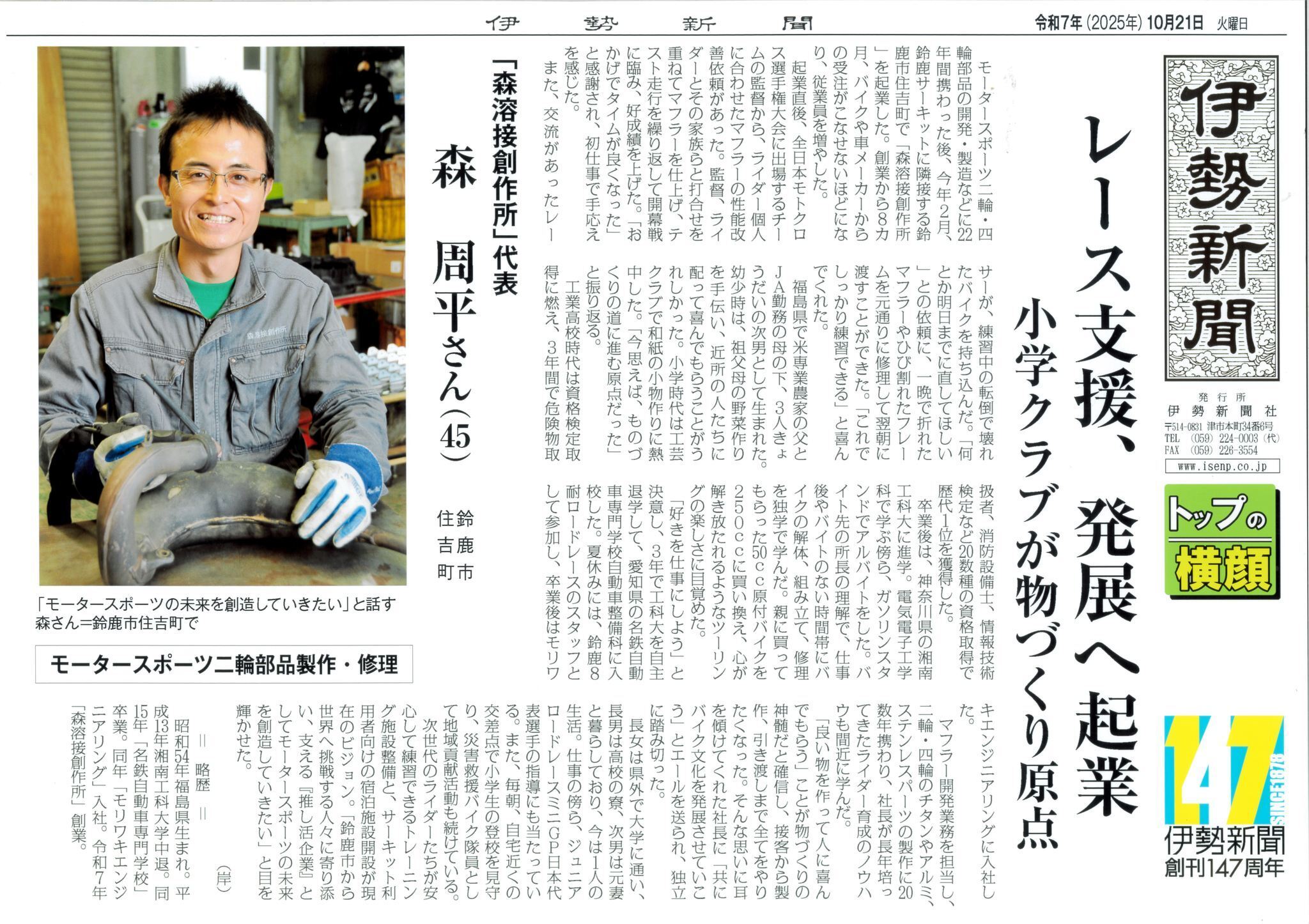 TIG溶接を中心とした金属加工業(森溶接創作所)を本業としながら、子どもたちやモータースポーツを愛する仲間たちが、夢に挑戦できる環境づくりに取り組んでいます。