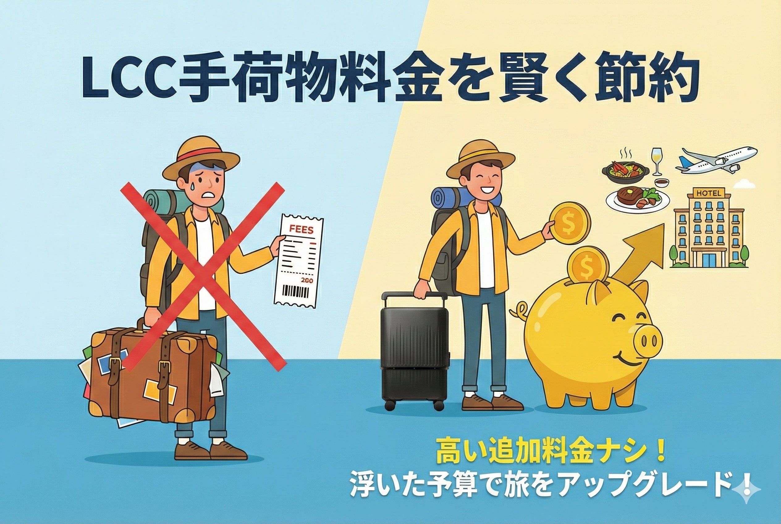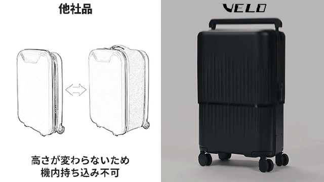 LCCの「手荷物料金」問題を、賢く解決。せっかく格安航空券でお得に旅に出るはずが、手荷物の追加料金で結局高くついてしまった……そんな経験はありませんか? 手荷物規定が厳しいLCCでも、VELOを最小サイズにすれば機内持ち込みが可能*。高い追加料金を支払う必要はもうありません。 浮いた予算で、旅の食事や体験をアップグレードしましょう。