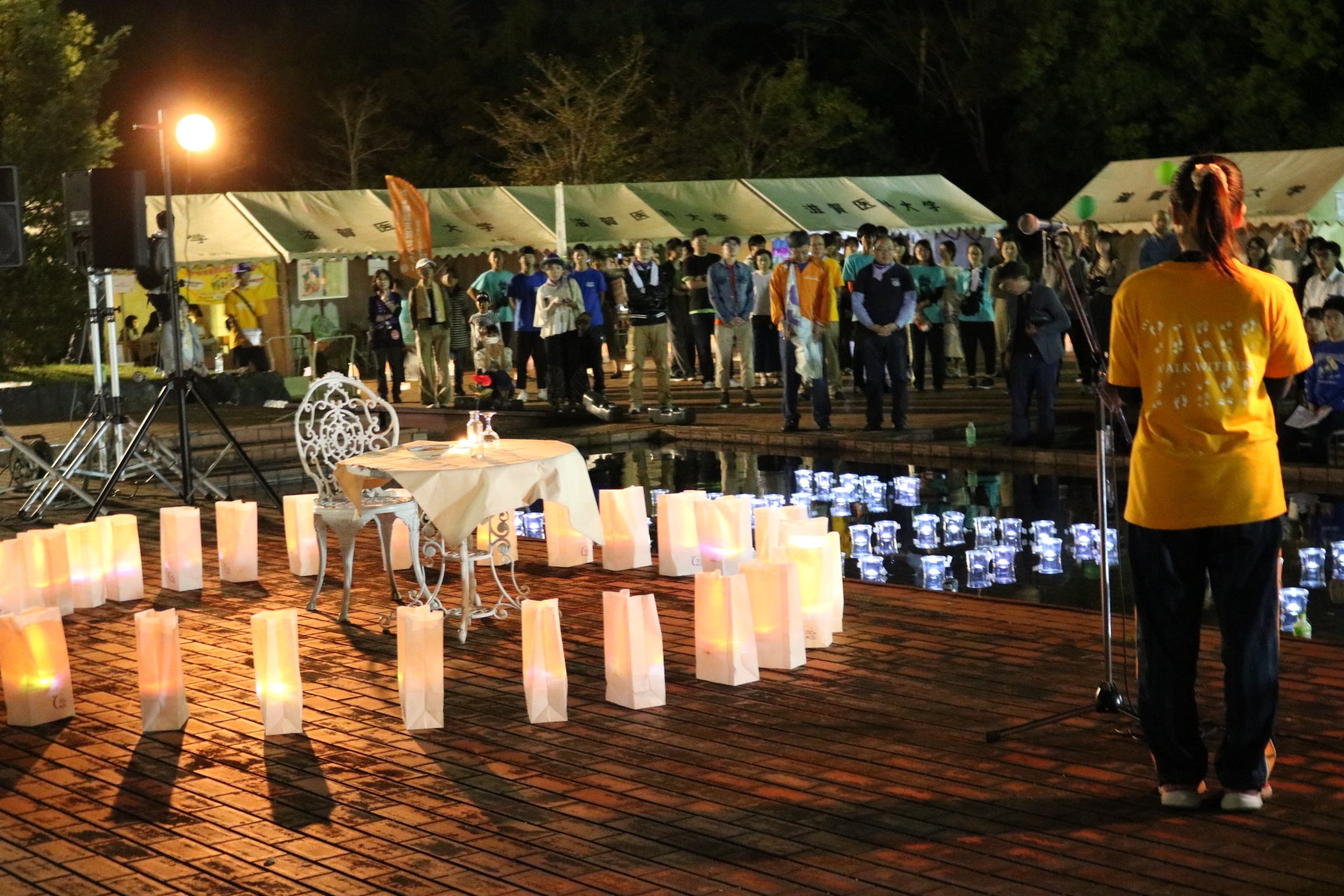 がんで亡くなった方や闘病中の方へのメッセージをキャンドルの光で浮かび上がらせます。