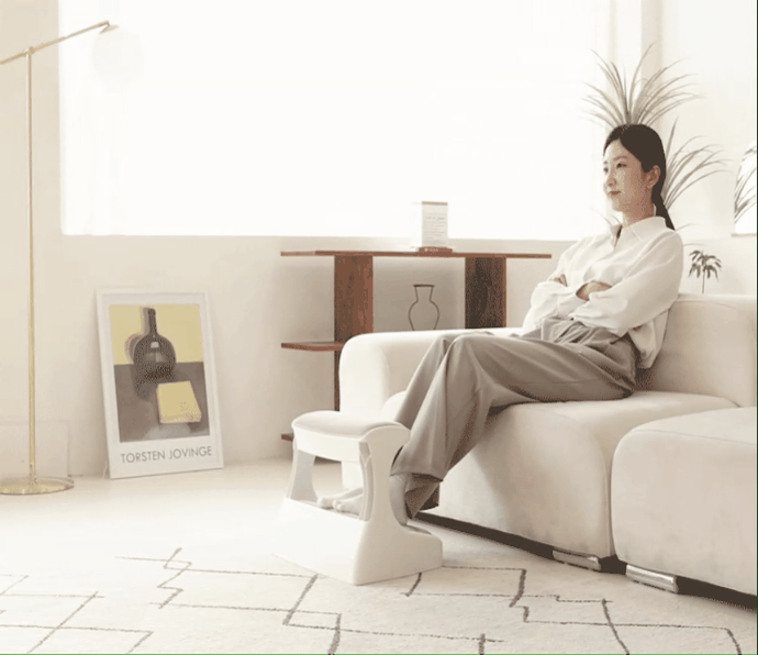 オフィスチェアだけでなく、家庭用ソファなどもあり、より快適に座るを研究した結果、足置き台に注目しました。