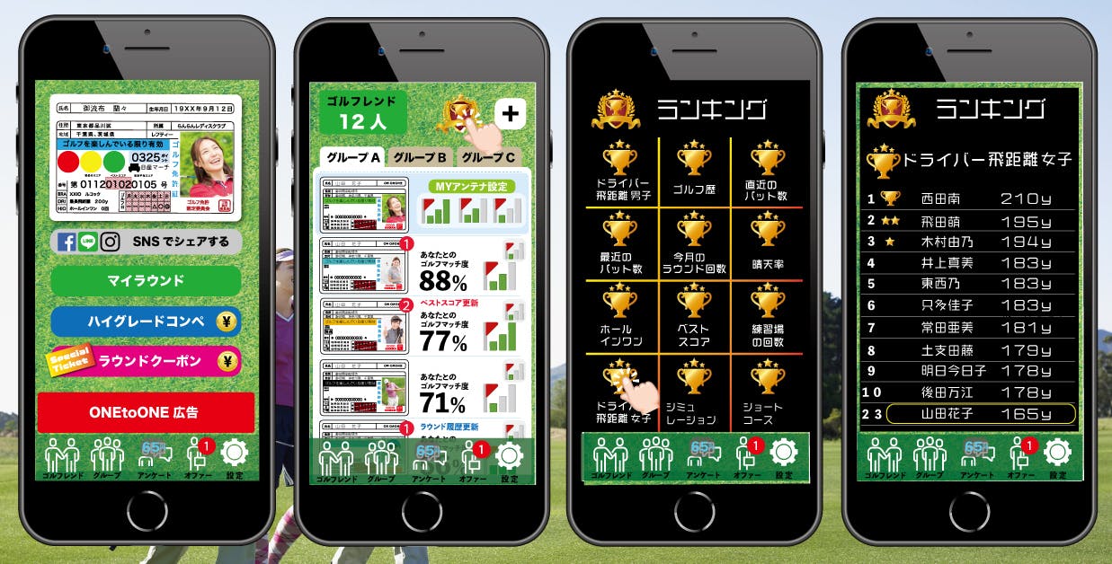 この「ゴルフ免許証」をより使いやすくより楽しいアプリに成長させていくとともに、