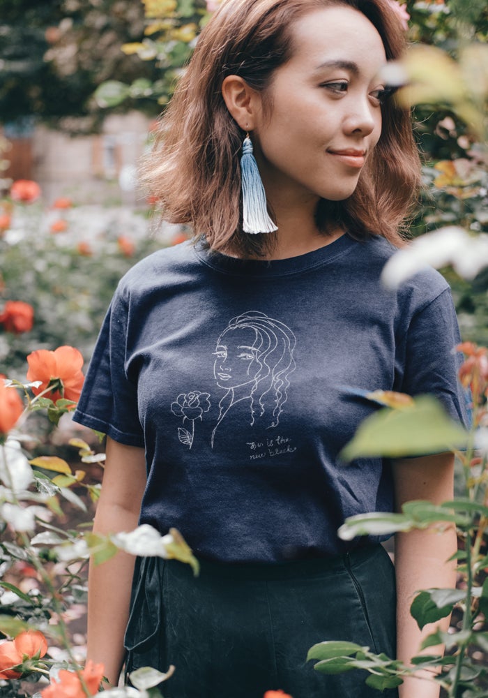 "あい is the new black"には、定番の黒のように、藍(i,愛)が新しいわたしたちの定番になっていく、という意味が込められています。