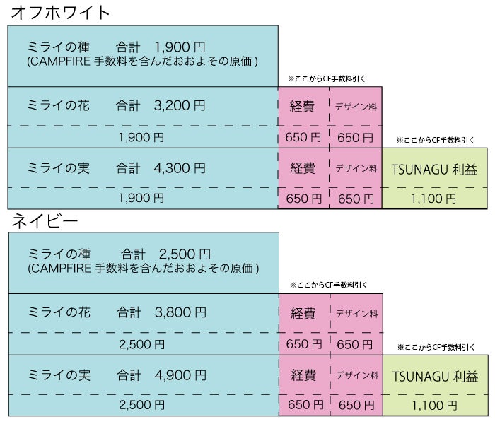 また、この商品は本当にすべての方に届けたいほどすばらしい商品なので、TSUNAGUは原価を公表し、みなさんにぴったりの価格を選んでもらうことにしました。