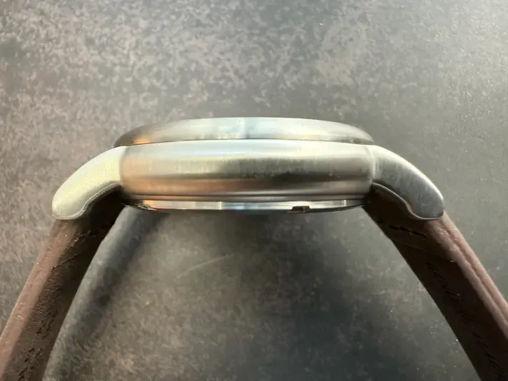 いわゆるボーイズサイズで日本人にはとても良いサイズ感です。もちろん女性の腕にも違和感なくご使用できるサイズです。上質なステンレススティールで制作した本体ボディは、側面から見ても緩やかなカーブシェイプにも美しさを感じる事ができます。