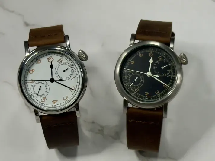 前記にあるようにこのモデルは1940年まではホワイトダイヤルでした。ホワイト及びブラック共に文字盤は、スイスに実在したAR&J.E.MEYLAN社の文字盤をオマージュしています。