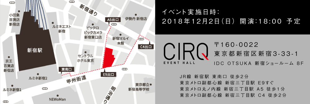 ■未就学児童の入場はお断りいたします。18歳未満の方は保護者の同伴が必要となります。同伴者の方もイベント参加権が別に必要となります。