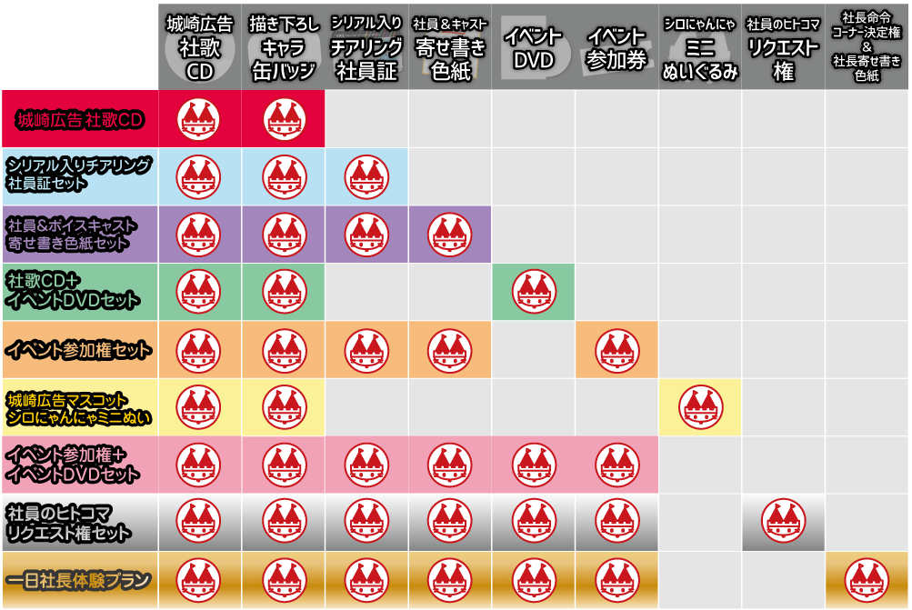 社歌収録イベントの参加権やイベントDVDはもちろん、チアリング社員のみんなに喜んでもらえるような様々なプランを用意したから、ぜひいろいろ検討してみてほしいね。