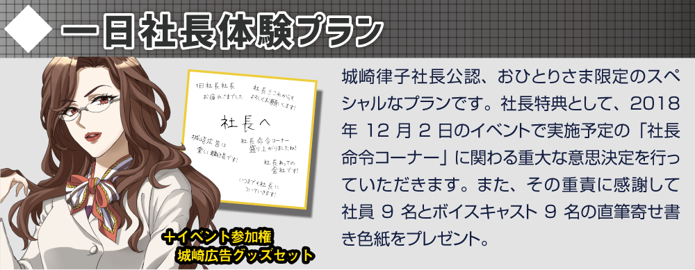 チアリング社員にとっては貴重な機会となると思うぞ。むろん、一日とはいえ社長の命令には社員一同全力で従う。