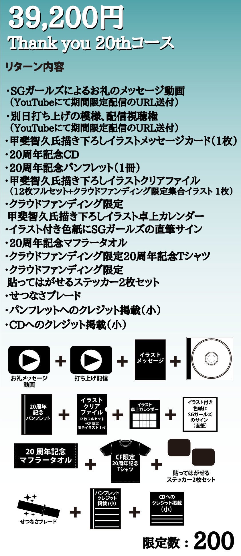 A :「クラウドファンディング限定」と記載のあるものに関しましては本企画用に作成されたもので、一般流通による販売は予定しておりません。