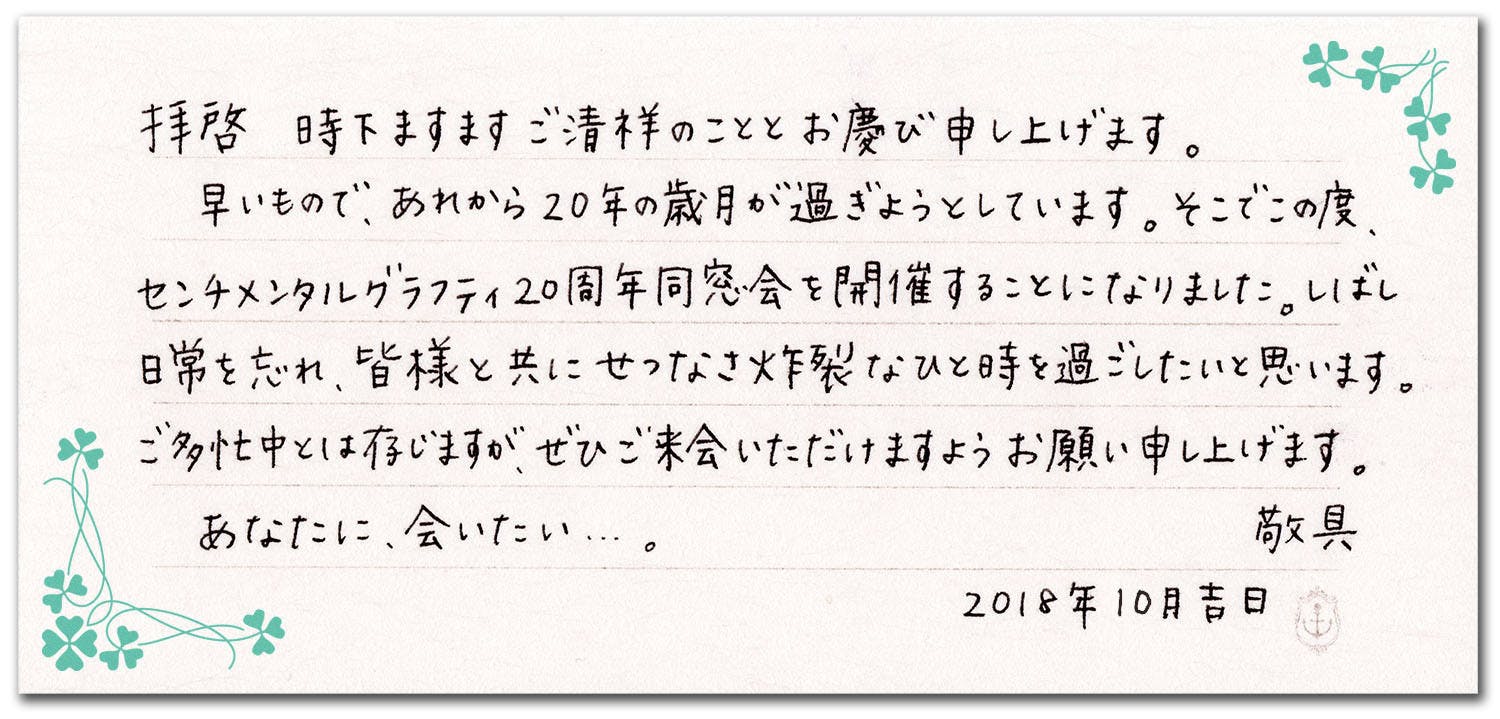 私たちから皆様へ、20周年の招待状を届けます…。