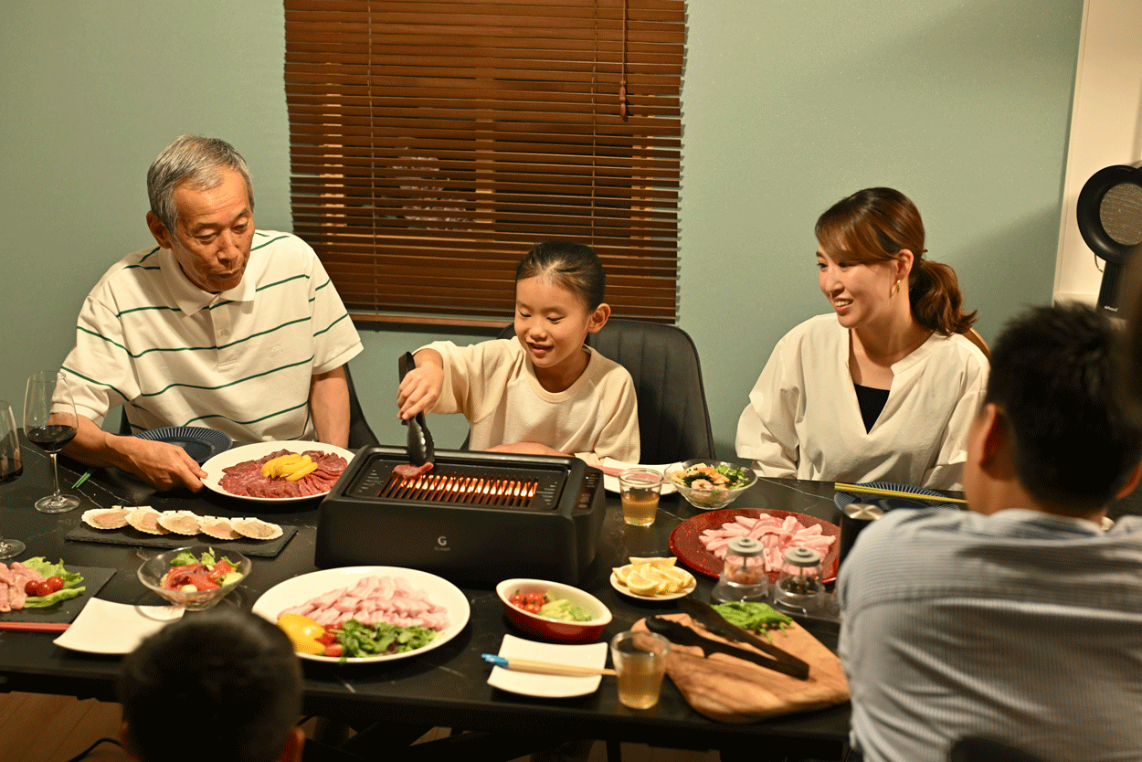 超少煙グリルDXなら煙を気にせず、リビングやダイニングで本格的な焼肉を堪能できます。
