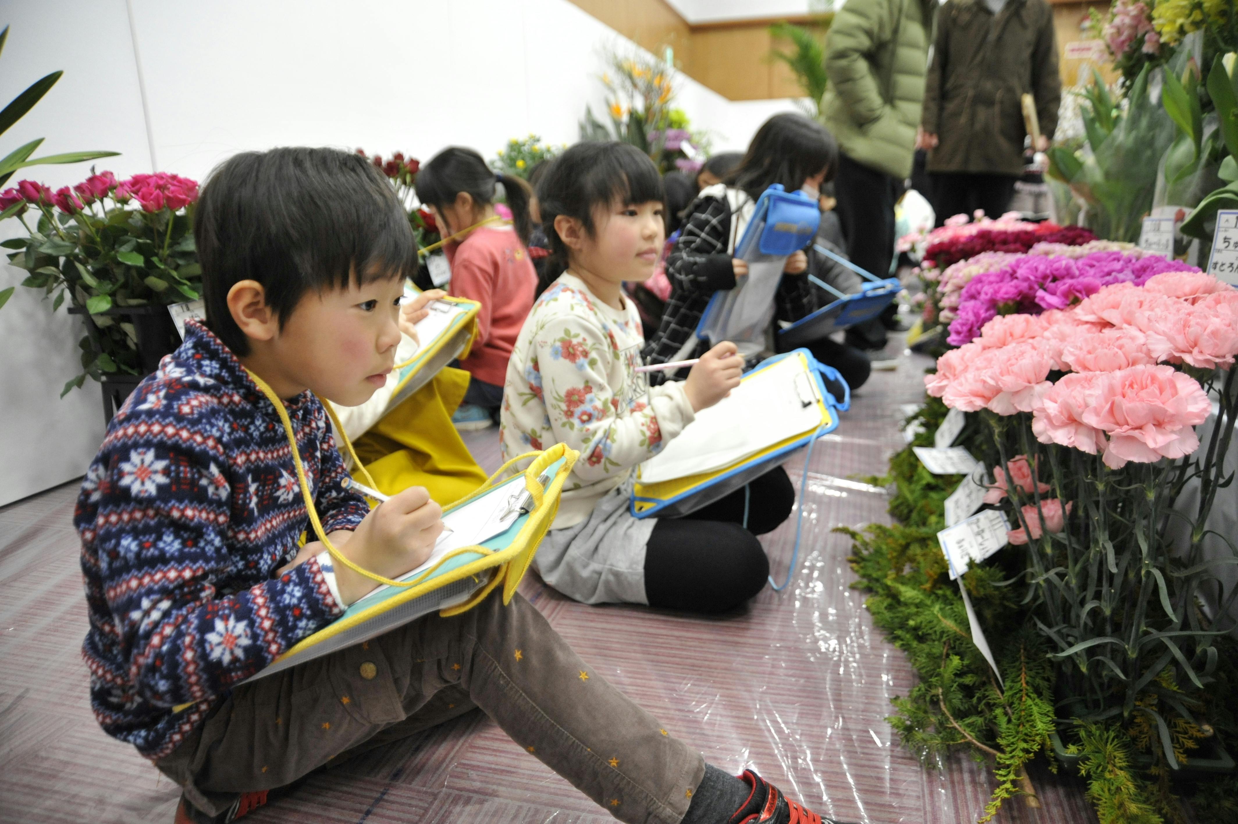 会場に入った瞬間に子供たちは驚きの表情とともに大きな歓声をあげ、その後は目を輝かせながら真剣に花を観察します。そばで見ていると子供たちの大きな感動や知的好奇心、集中力など様々な心の動きが見て取れます。