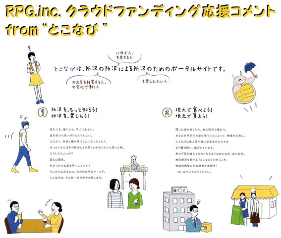 2018/10/19 17:19RPG, inc.の提案する可能性に満ちあふれたシェアスペース "SAVE AREA"計画 このプロジェクトを応援してくれる皆様からコメントを頂いております! 発信する人も、遊びに来る人も、素敵な交流が生まれる未来を夢みて、是非一緒に盛り上げて行けたら嬉しいです! 軌道に乗せるのは大変ですが、まずは、大きな根と大きな幹を作るためにゆっくりでもよいですから、前に進ませて継続してください。 葉や枝は折られてもなんとかなります。 【とこなび】様より Q:どんな活動をされているのですか?地元ところざわの店舗や企業、個人事業主の方たちを応援するポータルサイト「とこなび」の運営や、若者を支援する目的で「ところざわ学生映画祭」「キャリア教育シンポジウム」などのプロヂュースなどもしております。 Q:どんな方にむけて活動されていますか? 主に二つの方たちです。 ひとつは、「とこなび」に広告掲載を考えている、お店、企業、個人事業主の方たち。もう一つは、「とこなび」を使って、ランチやカフェなどお店を探している人、 その他、情報を得たいと思っているひと。サイト内で交流を求めている人など。 Q:この施設(SAVE AREA)で交差するアナタとワタシの未来予想図 ビジネスや遊び事、文化芸術などの創造には、様々な才能や知識が交差する“空間”や“場”のようなものが必要だと思っています。 そのような“場”がこの施設だとおもしろいと思っています。 Q:この施設(SAVE AREA)はどんな人にオススメできますか? 好奇心旺盛で、想像力と創造力に富んでいて、チャレンジングな人。 「とこなび」 https://tokorozawa-navi.com/ 所沢市東所沢3-22-5 04-2945-5880 代表 山下勝也 080-3010-3717 ★Reply from RPG, inc. コメントありがとうございます!地元から発信するメディアとしてたくさん勉強させて頂きます。人と場所と出来事とそれを広く伝える発信が必要不可欠だと感じています。この施設もそこまで見据えた動きができるように頑張っていきたいと思います。本当にまずは大きな幹となり、多くの人の拠り所になれるように頑張っていきたいと思います!もし成長したときは是非取材して下さい♪それと、とこなび様がプロデュースしている「ところざわ学生映画祭」なども、この施設でいつかサーキット上映できたらいいなぁと勝手に思っています。今後とも何卒よろしくお願いいたします! 「ところざわ学生映画祭」情報 ・11月25日(日)10:45(開場10:00)~・西武所沢店8階ワルツホール所沢・入場無料 RPG, inc.のクラウドファンディング本文はコチラ https://camp-fire.jp/projects/view/92732 多くのご支援をいただき本当にありがとうございます。10月20日がラストデイです! 正真正銘のラストスパート!ご支援頂いたみなさまの気持ちやお言葉、カラダとココロの奥まで染み込んでいます!「応援して良かった!」そう思える日まで、絶対に歩みを止めません。ここからの動き、ここからの活躍、しっかりと追いかけて頂けたら嬉しいです!見ていて下さい!一緒に巻き込まれて頂いた皆様、本当にありがとうございました!そして、ラストのラスト、一緒に飛び出す準備をして頂いているみなさま、まだ支援するか悩んでいる皆様、どうか、思い切ってご支援の程お願いいたします!必ずや面白い出来事が巻き起こります。そのとき「一緒に関わって始められた」という思い出に。一緒に仕掛ける側で楽しみましょう!待っています。どうか応援の程何卒よろしくお願いいたします! もっと見る