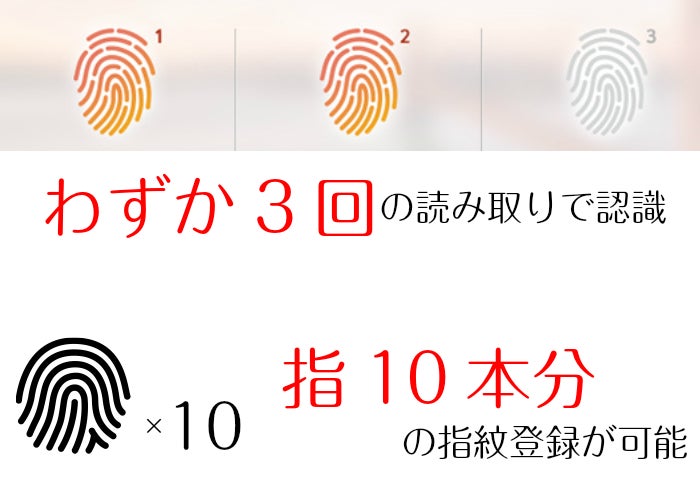 5)指紋は10本まで登録可能。あなたとご家族などとシェアしていただければより安全に使えます。
