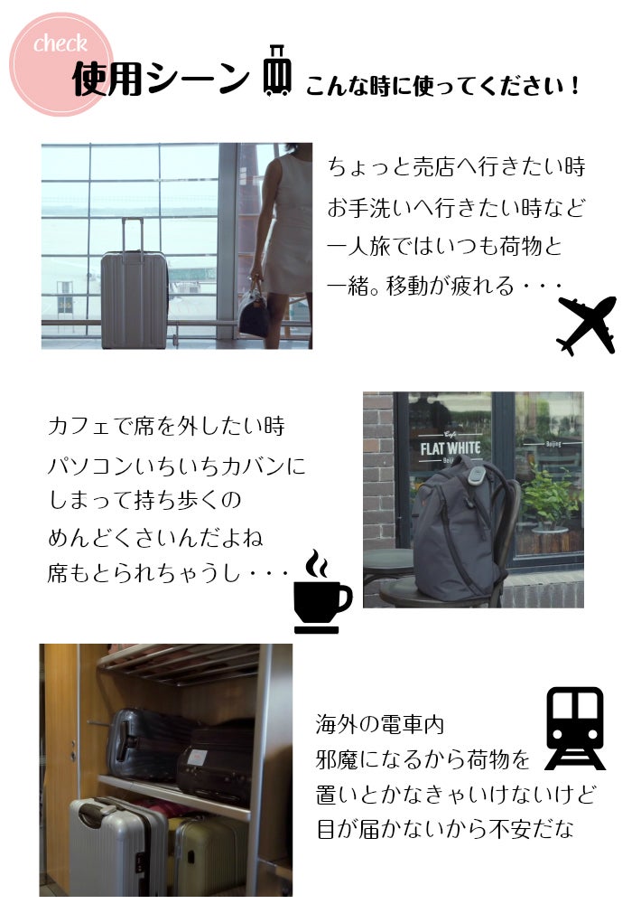 3)簡単にどこでも荷物をガード