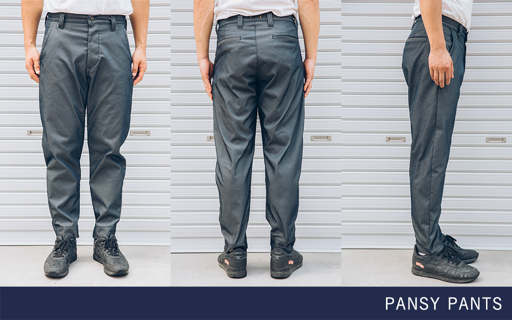 ◎「前回のパンジー」や「着たくないのに毎日着てしまうパンツ」と比べると、股上も深めで、ルーズに穿いて頂けるシルエットです。