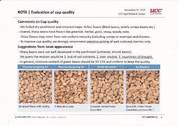 ロタコーヒー豆の品質報告書 from UCC