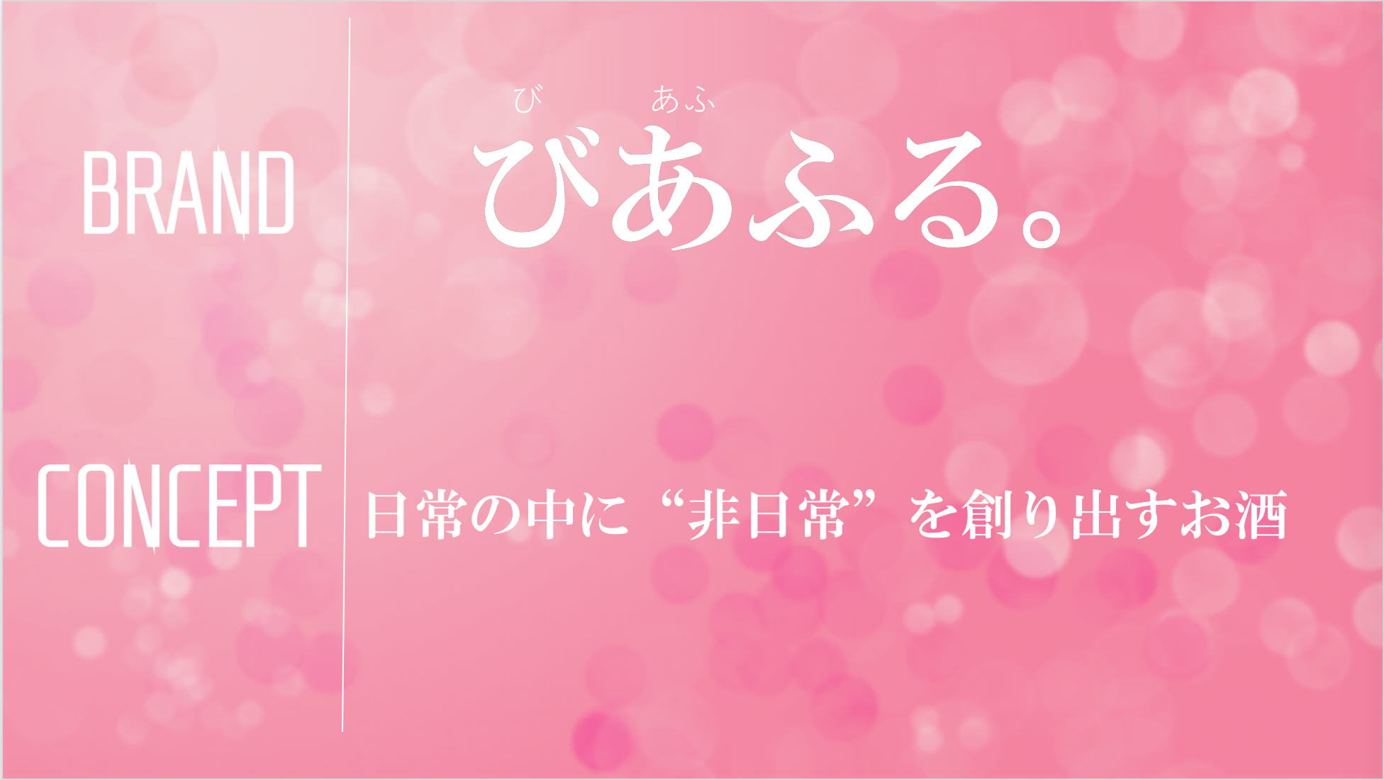 「beer(ビア)」と「fruits(フルーツ)」を掛け合わせて名付けた『びあふる。』というブランド名。いつもの毎日がちょっとだけ特別な日になる、そんなフルーツビールのブランドを作ります。