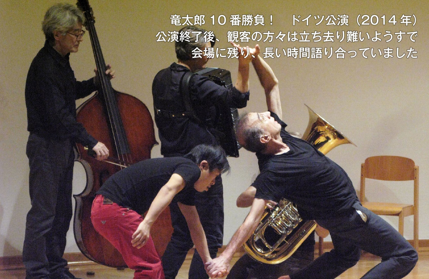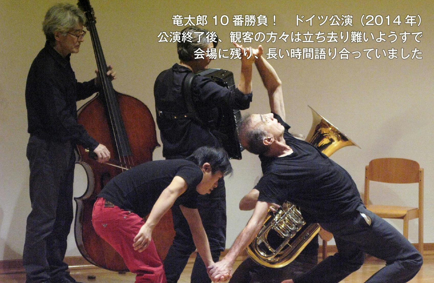 2014年、「竜太郎10番勝負」公演、日本での6回(いずるば)、ドイツツアーで4回(ケルン、ボッフム、ドルトムント、 ヴッパダール)を齋藤徹、ジャン・サスポータスと共に成功させる