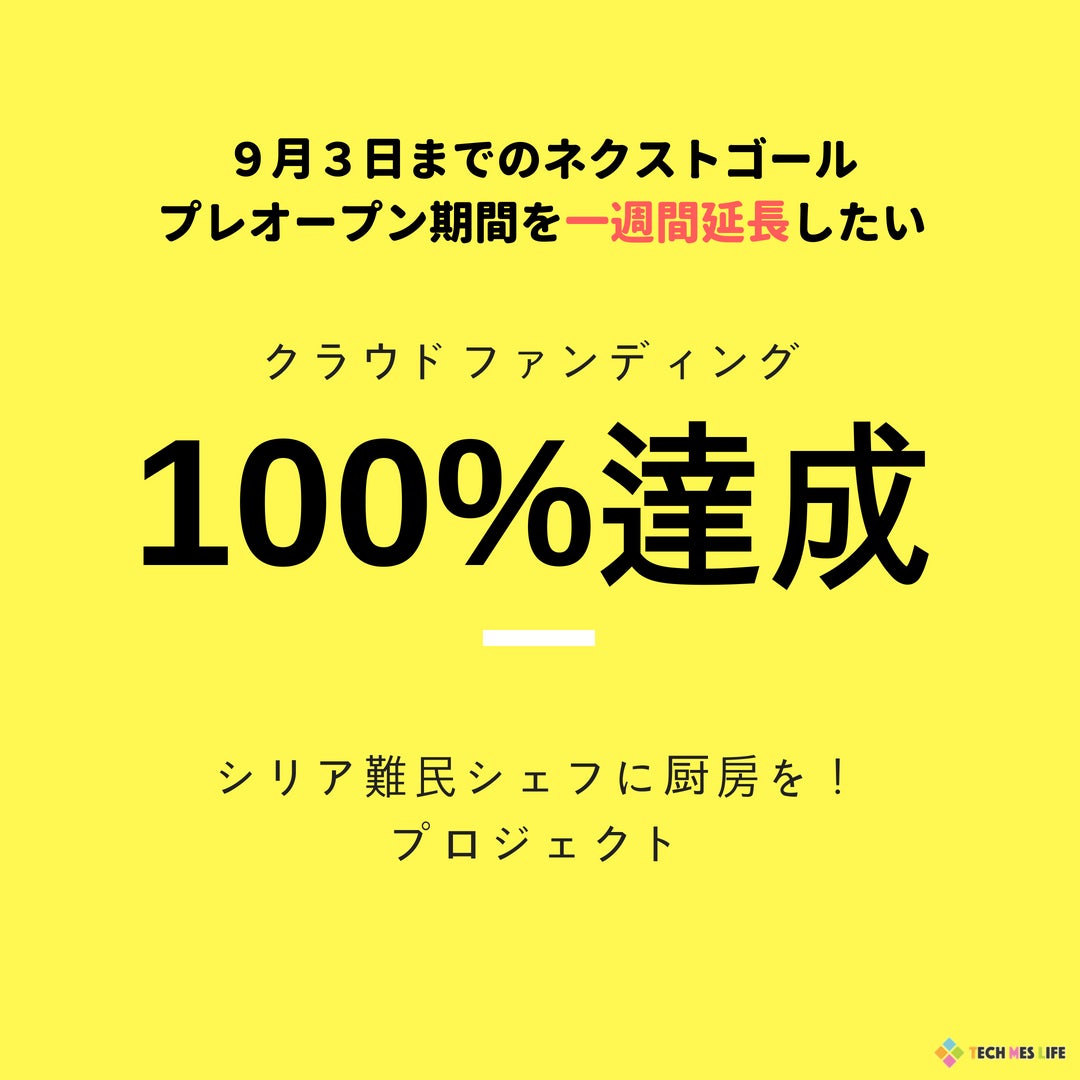 2018/08/29 17:23支援額が目標金額の30万円を達成しました!68名以上の方々からの温かいご支援と応援の声をいただき、感謝の気持ちでいっぱいです。本当にありがとうございます。 https://camp-fire.jp/projects/93290 SNSやメールにて応援の声をいただくたびに一同大変心強く感じるとともに、みんなで素敵な社会作っていこうという希望の光を浴びている感覚でございます。「応援して良かった」と思えるようなご報告ができるように、30万円は大切に使わせていただきます。 そして、一人でも多くの方々へシリア料理の素晴らしさをお届けするために、現在ネクストゴール70万円に挑戦しています!達成すると、プレオープン期間をあと一週間延長することが可能となります。プロジェクト終了まで、残り6日となりました。引き続きの応援をどうぞよろしくお願いいたします。 並びに、このクラウドファンディングに挑戦させて頂くために、プロジェクト本文のスペシャルサンクス欄に記載されている法人や個人の皆様に多大なるご尽力を賜りました。改めて、この場を借りて御礼申し上げます。 テック・メス・ライフ株式会社代表取締役森川智貴 もっと見る