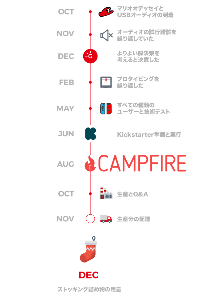 2018/12/03 15:52Campfireパトロンの皆様へ、こんにちは! 12月に入ってGenkiがまだお手元に届かなくて申し訳ございません。日本の無線通信規制を守るのTELECというの技適証明書が無事に手に入りましたので、間もなく日本への発送することが始まります!更に、Campfireからの振り込みが我々の口座に2018/11/30に振り込みされており、現在の段階で商品の梱包ケースを日本語に翻訳中でございます。そんな訳で、次の2週間の間に[今週含む]、皆さんのGenkiがお届け予定となりますので、しばらくお待ちください。英語が読めるの皆様、キックスターター上にお届け進歩がちょくちょく最新されており、先週5000人の方にGenkiを発送致しました。こちらのリンクからご覧頂ければと思います。 https://www.kickstarter.com/projects/humanthings/genki-bluetooth-audio-for-the-nintendo-switch/posts/2356652 最後に、Kevin Kensonという有名人がレビューして頂きましたので、余裕があればご覧くださいませ https://m.youtube.com/watch?v=Jid20fSW35s よろしくお願い申し上げます。Eddie もっと見る