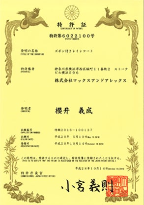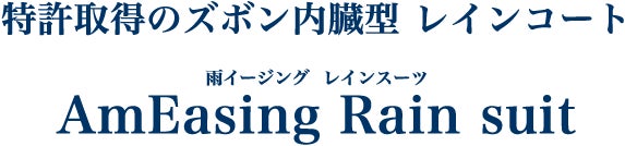 雨の日でも、さっと簡単に着られるレインスーツという意味です。利用者の立場から作られたAmEasing Rain suitは、その機能が認められ、2016年10月に特許を取得いたしました。
