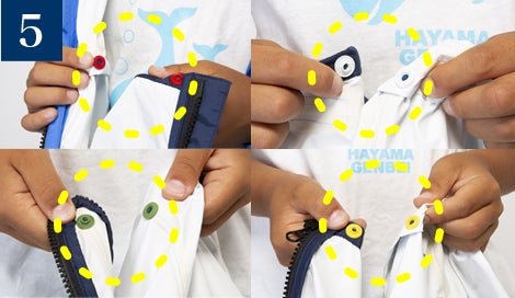 収納時も迷わない。色別ホックを留めるだけの簡単収納。