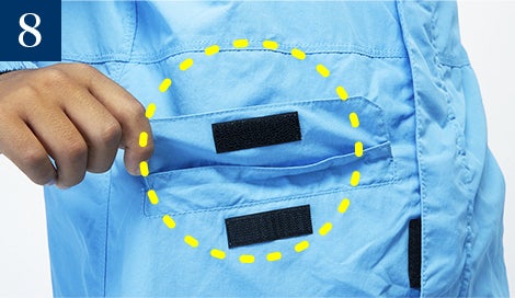 袖部分とフード部分はシャーリングで雨の侵入を防止。