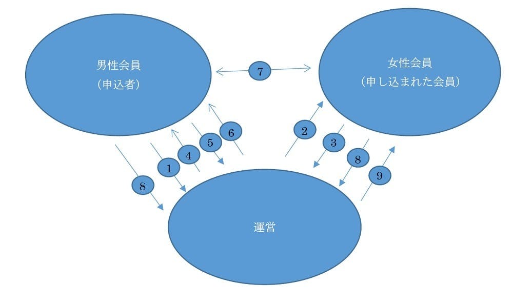 2.申込者の各ランクと年齢・会いたい地域を女性会員に伝える。